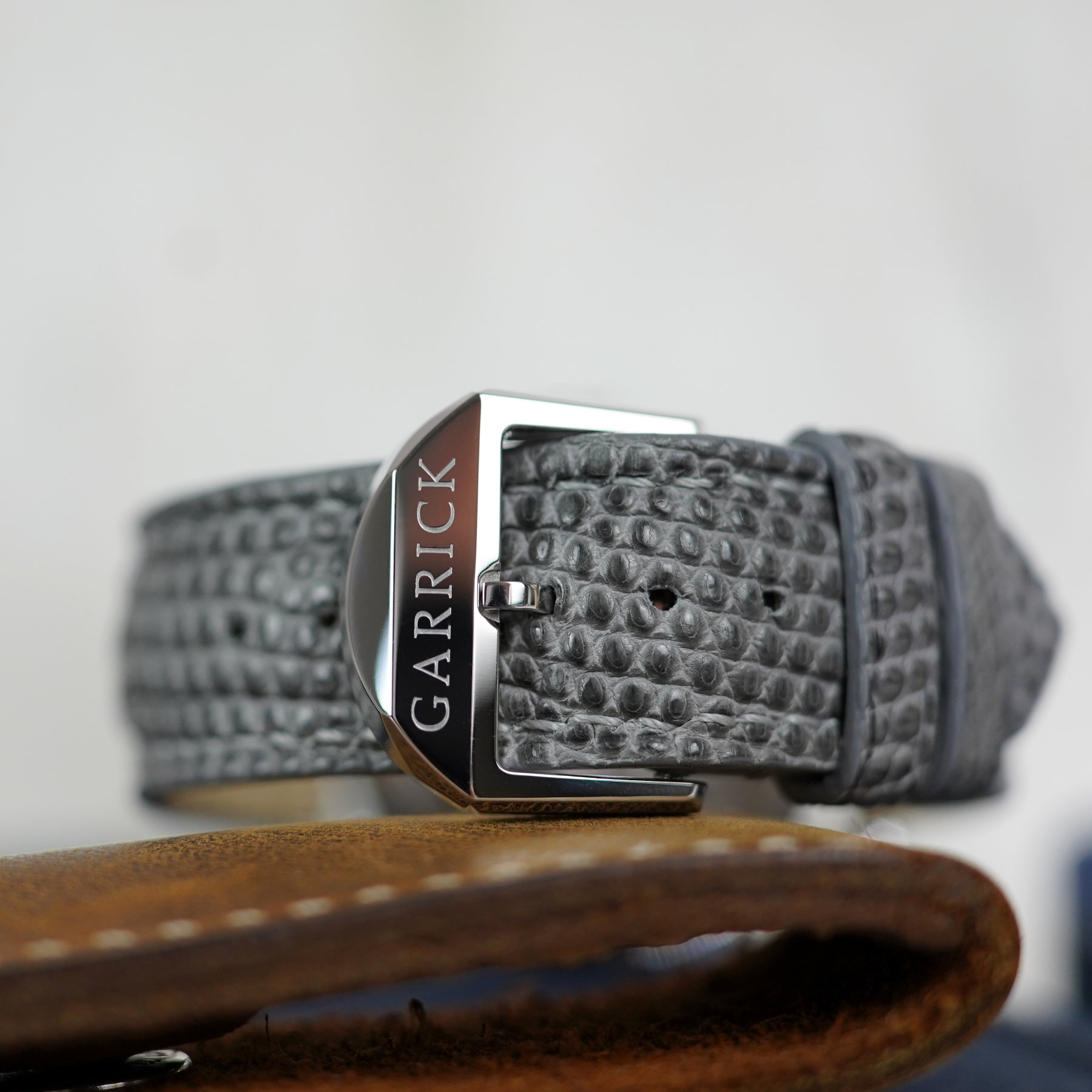 The Garrick S2 Deadbeat Seconds comes on a range of different leather straps, from humble calfskin to more exotic alligator or ostrich. For this one, Garrick opted for a grey lizard strap, which works surprisingly well, even though I wouldn’t have gone for it if given the initial choice. The price is set at GBP 19,000, excluding VAT, which equates to approximately EUR 22,500 or USD 23,750 (both before taxes).