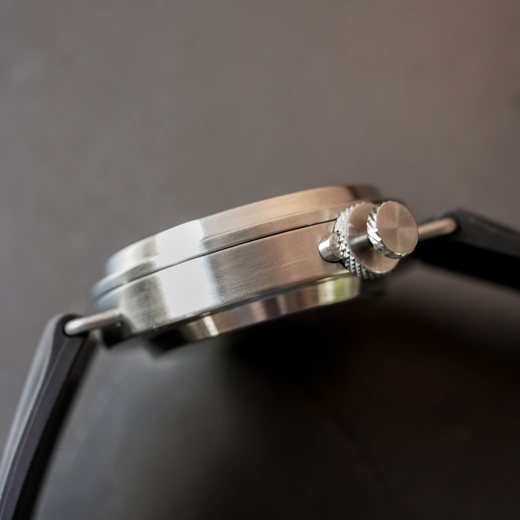 The case for the Jump Hour is similar to the three-hander in bronze, but this time, it’s crafted from stainless steel. Like the bronze one, the fully brushed case has a decidedly industrial appeal without looking too steampunk-esque (which is good!). And I must admit, it’s a refreshingly simple design amidst the vast majority of case designs we see. The whole case, which measures 39.6mm across and 12mm in height, is machined by hand. That means that the same level of attention is poured into each and every case, and therefore each and every watch, by the man himself. You don’t get that with many other brands!