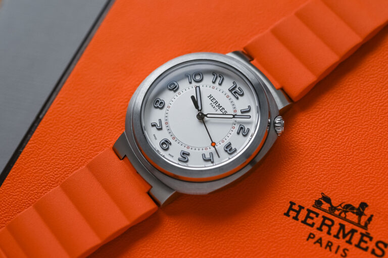 Pricing and availability are currently to be confirmed (the red dial is a so-called “one-shot” batch not to be reproduced), but this Hermès Cut Le Temps Suspendu is certainly an interesting evolution of the collection. For more information, please visit hermes.com.