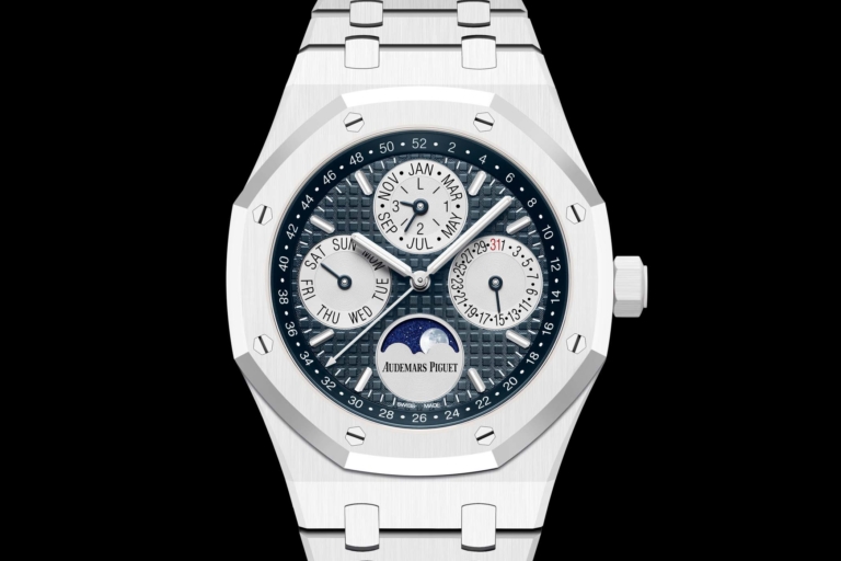 The Audemars Piguet Royal Oak Perpetual Calendar 41mm Blue Ceramic (reference 26579CS.OO.1225CS.01) is now released as part of the permanent collection and joins the white and black ceramic models. Like its siblings, it won’t be produced in large quantities. The price is indicated at CHF 129,000 (excl. taxes).