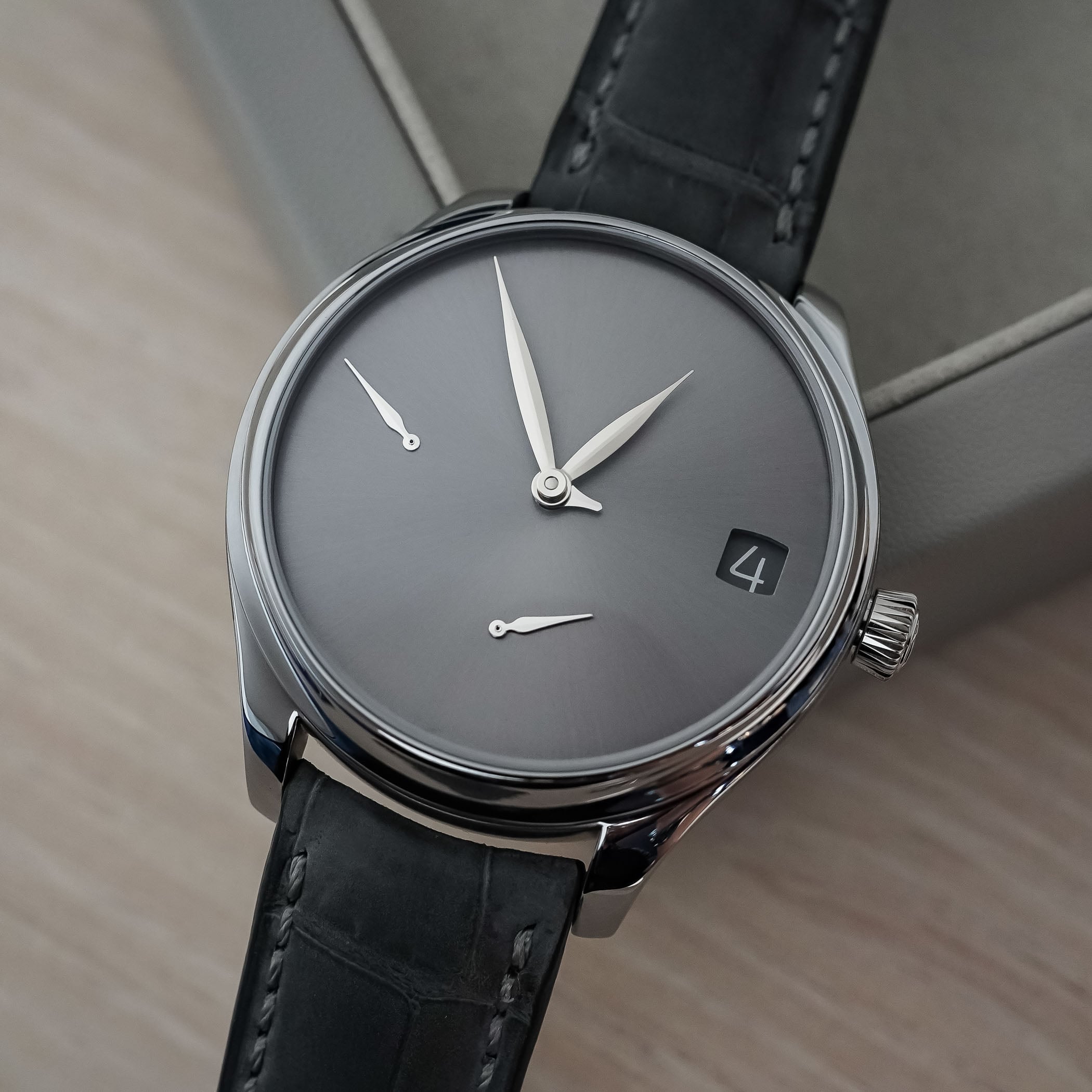 Anyone who has kept a close eye on my work for MONOCHROME Watches might have caught on to the fact that I have more than a bit of a thing for watches by H. Moser & Cie. I think what they do is brilliant, although I do not love-love everything in the catalogue. What I admire most is the audacity and creativity to integrate a specific concept into high-watchmaking. Materials, complications, displays and so on, it almost always feels fresh, coherent and very impressively engineered. And you might remember that last year, with the fabulous Endeavour Perpetual Calendar Smoked Salmon, the brand hit peak “Want, want, WANT!!!” for me. Now, though, they have outdone themselves yet again with this year’s edition. So get ready for a very biased, enthusiastic point of view on the ghostly-cool H. Moser & Cie. Endeavour Perpetual Calendar Concept Tantalum.