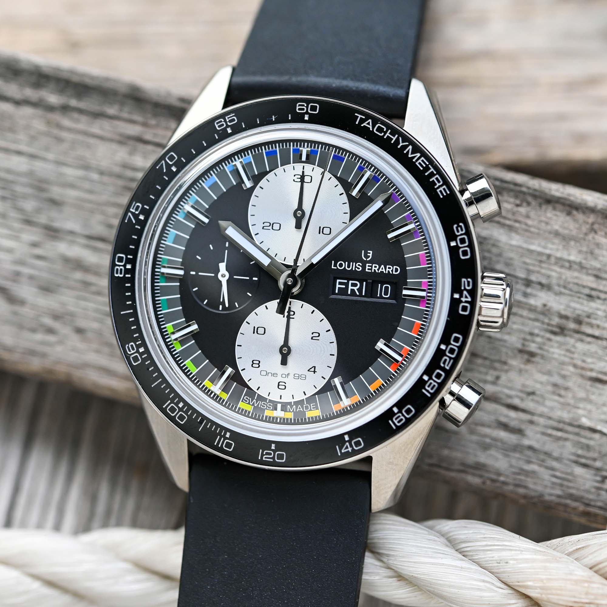 The Louis Erard 2300 Chronograph models – Sport Rainbow, Sport Blue, and Sport Khaki – are priced at CHF 3,333 (excluding taxes) and are limited to just 99 pieces per variant. For more, visit louiserard.com.