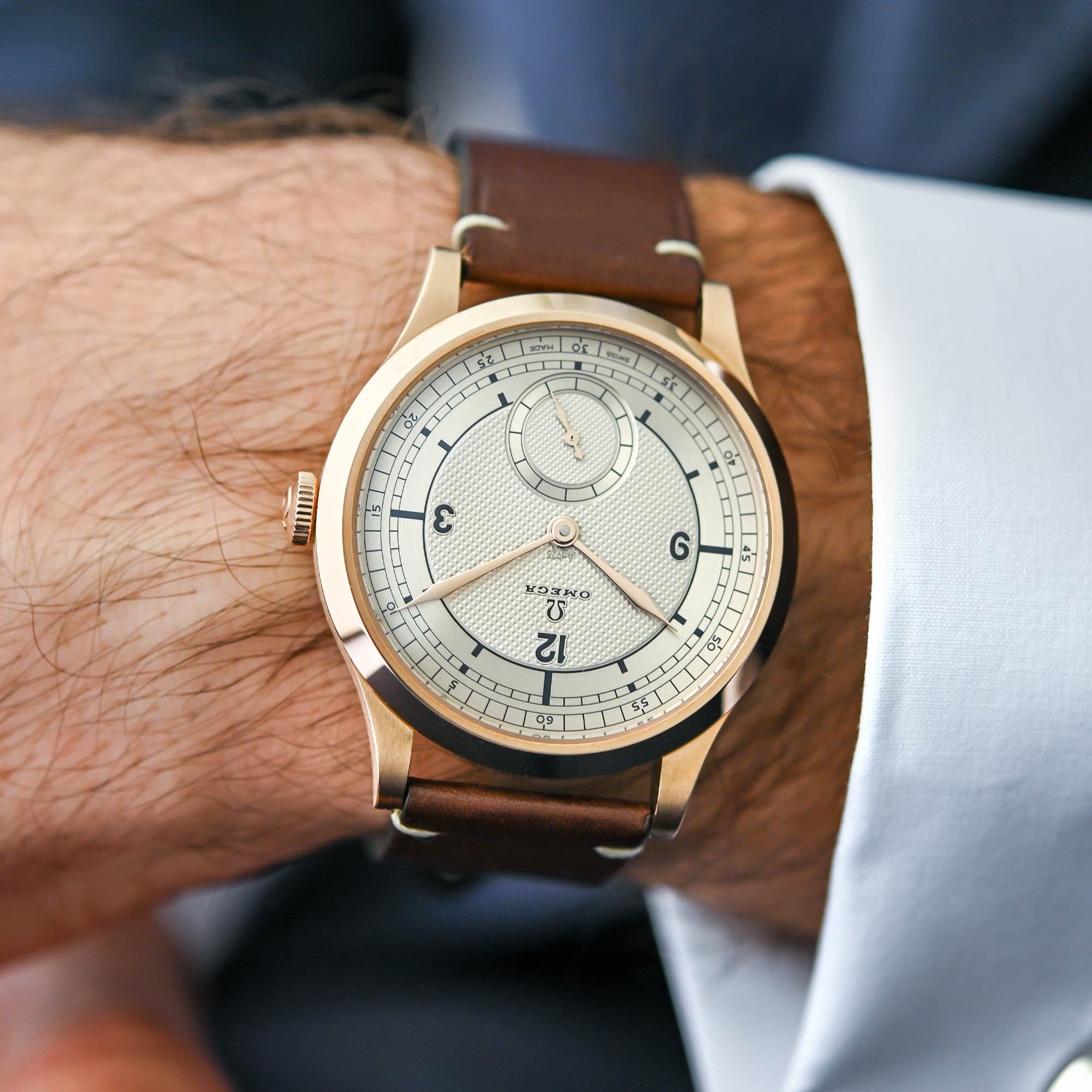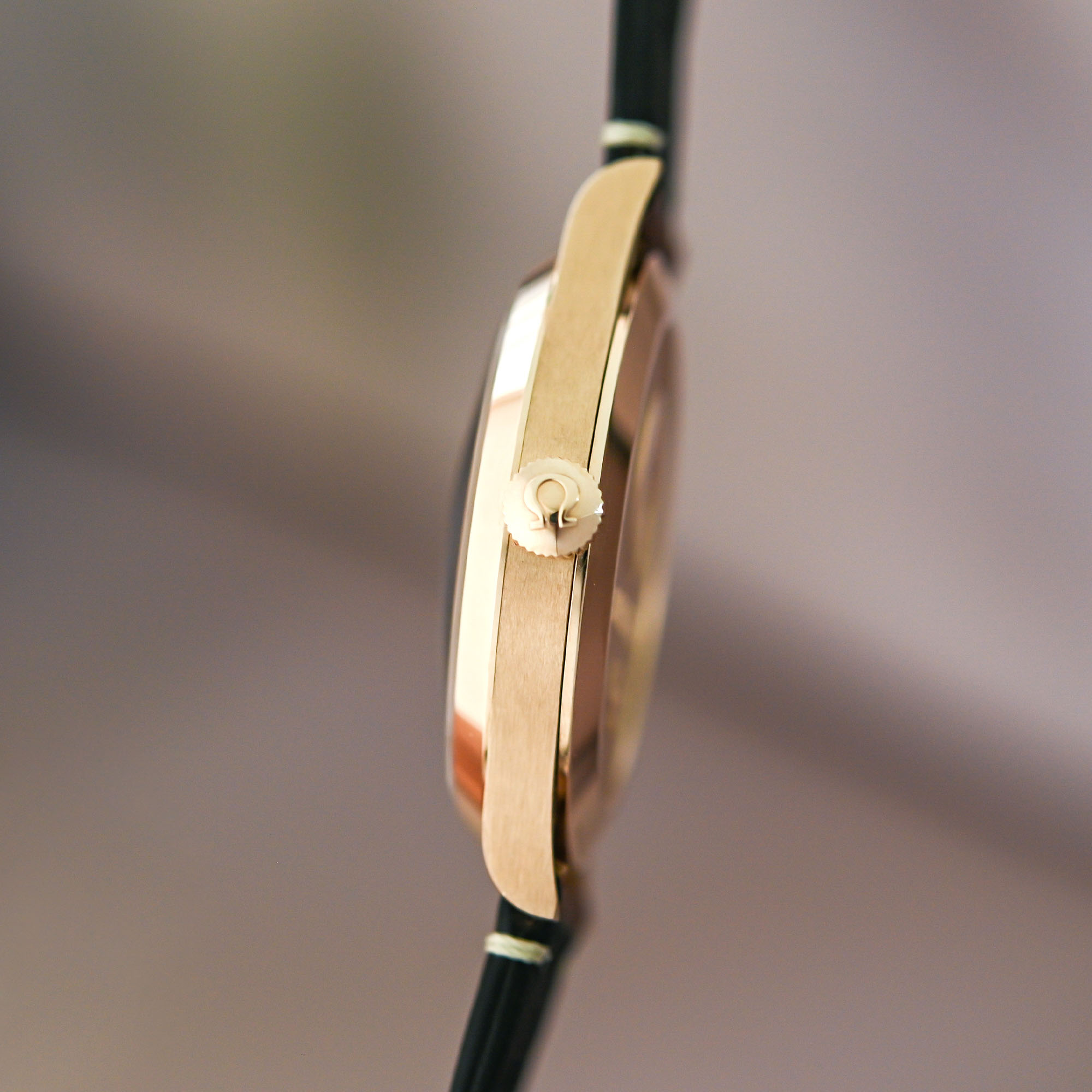 Although the Paris 2024 Edition abandons the CK 859 appellation, it shares many features with the Re-Edition, including the dimensions of the case. Measuring a compact and well-balanced 39mm across with a height of 11.7mm, the case is made from Omega’s proprietary Bronze Gold alloy. Developed by the brand to avoid oxidation and tarnishing, this special alloy comprises 50% copper, 37.5% gold, silver and palladium. The result is a soft, pink colour without the inconvenience of tarnishing.