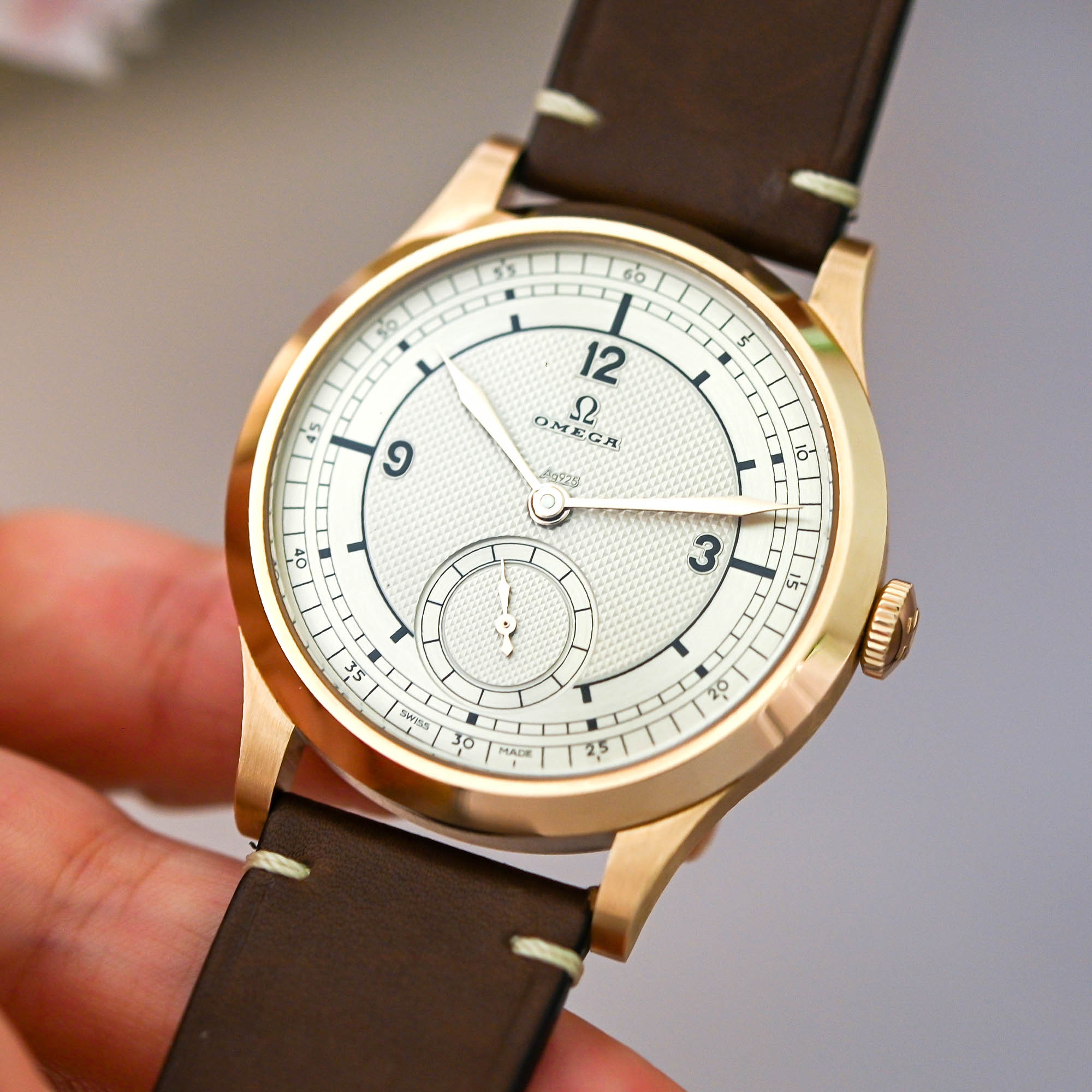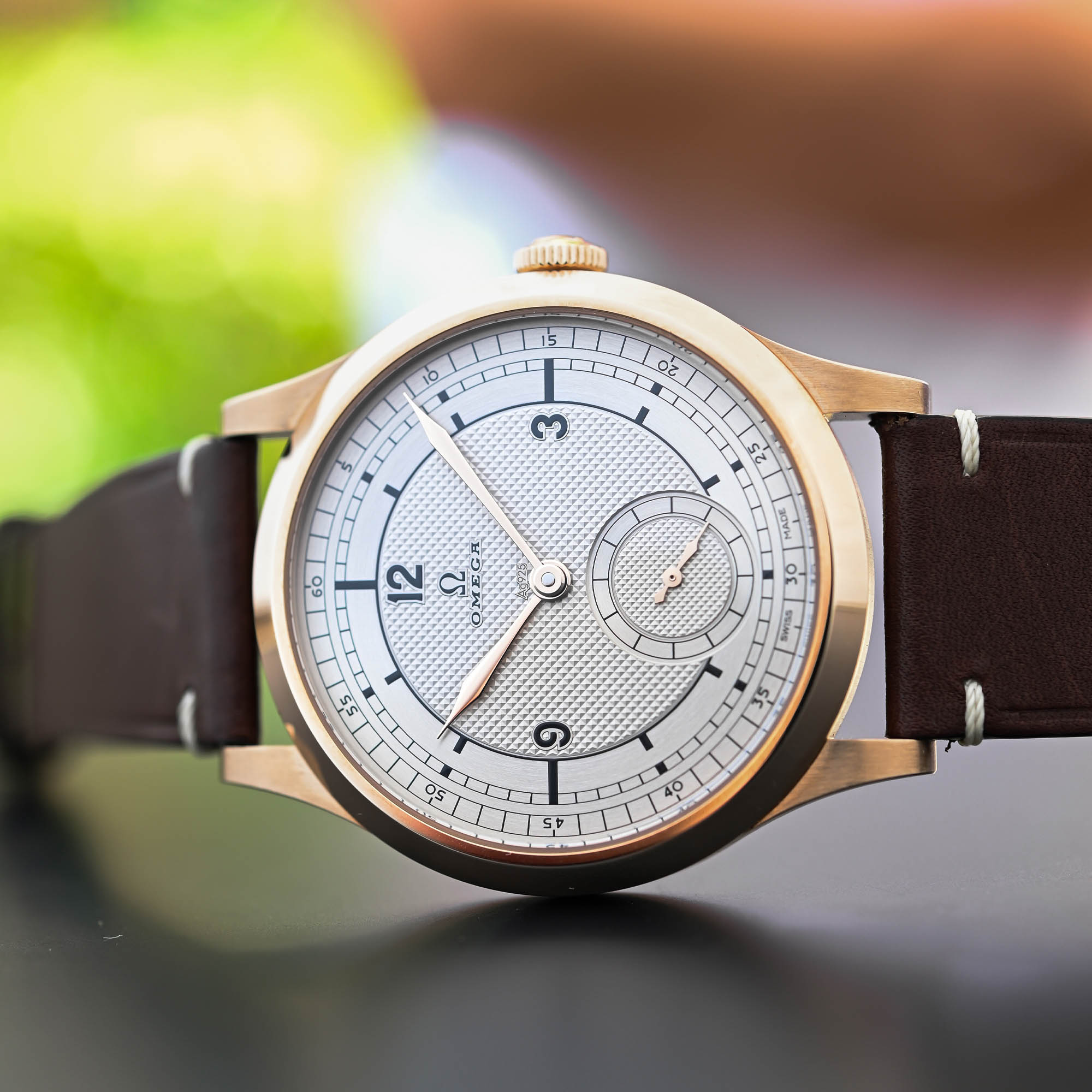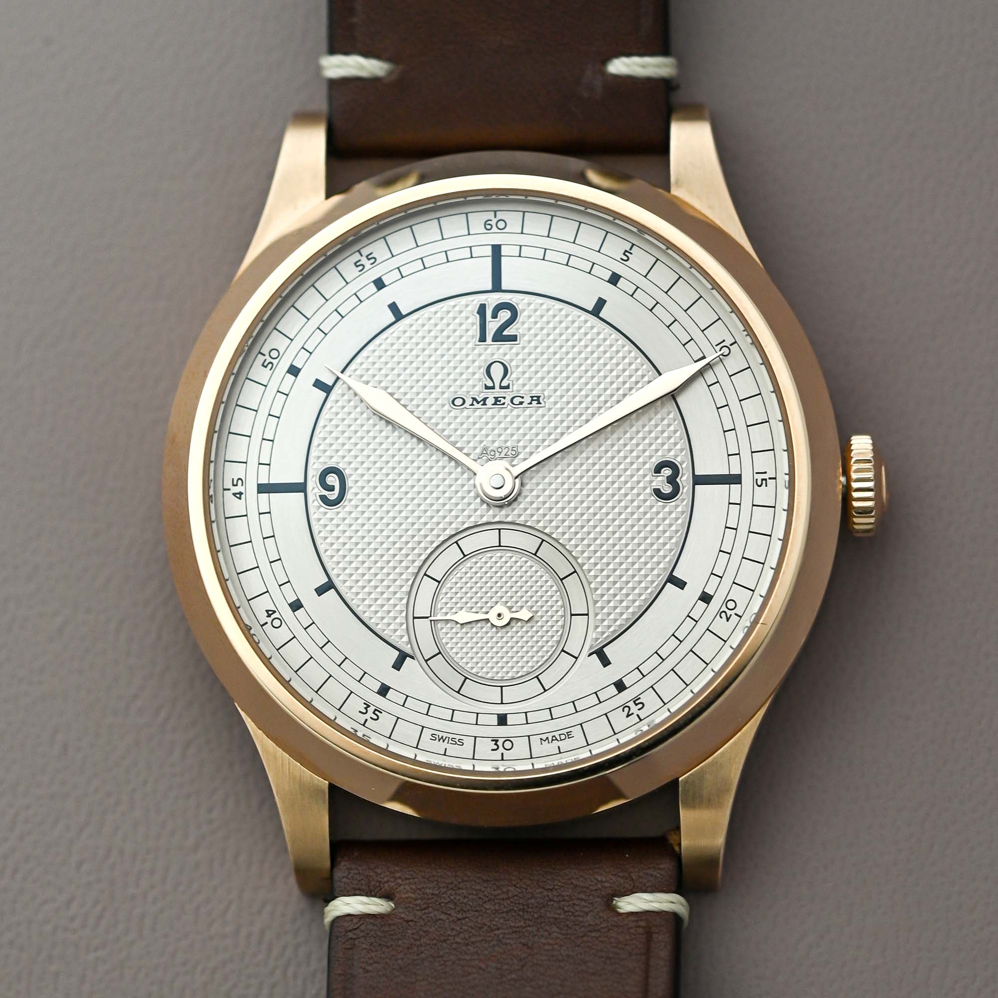 In the mid-1930s, Omega produced the CK 859 model, a Calatrava or coin-edge case with a three-part construction, a flat bezel and a raised crystal typical of the era. Re-edited in 2022 based on a 1939 reference, it was warmly praised by our team and even declared by Robin as the best Omega model of that year. It did make a brief comeback as a special edition for the Beijing 2022 Olympics in a more luxurious Sedna Gold case.