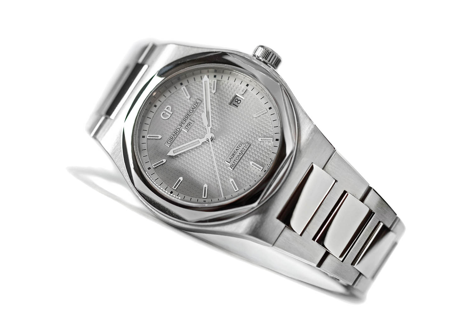 The 1970s are recalled as the decade of bell bottoms, disco fever, the Watergate scandal, anti-war protests, the oil crisis, détente, The Godfather, and in the niche world of watches, the birth of the luxury sports watch in the shape of the Royal Oak. When Girard-Perregaux released its luxury steel sports watch in 1975, it had a two-tone tonneau-shaped case with integrated bracelet and octagonal bezel, a Clous de Paris dial decoration, an ultra-thin quartz chronometer movement (calibre 705) and was named after the 1967 film The Graduate (Il Laureato). You have to remember that quartz was cutting-edge technology back then. Not only was Girard-Perregaux a pioneer in the development of quartz movements and set the standard frequency of 32,768Hz for quartz watches, but it had mastered the serial production of quartz movements by the 1970s.