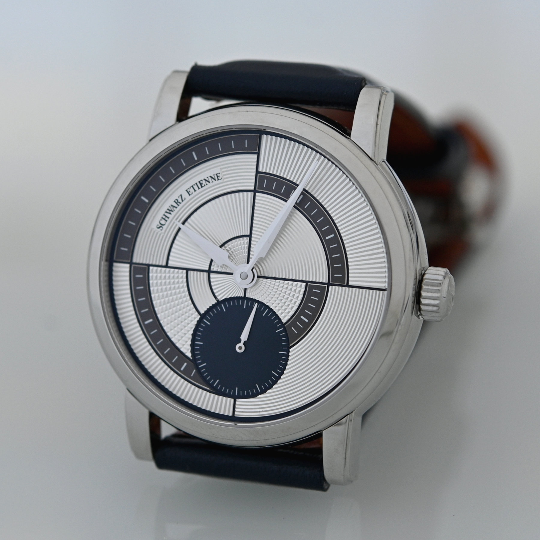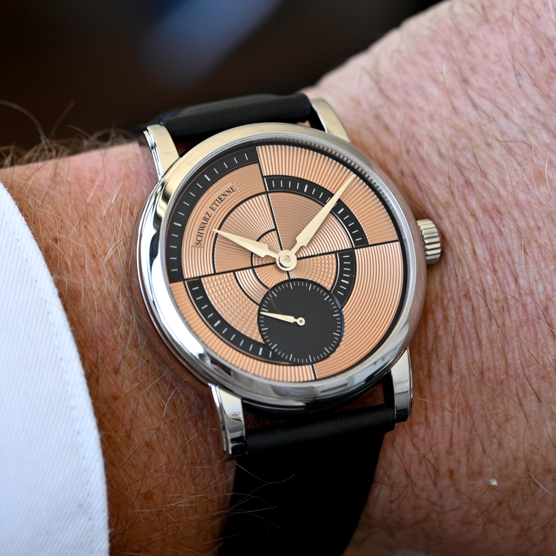 Along with its high-end calibres, which are shared with other brands, Schwarz Etienne has cultivated an original design language. Instead of churning out run-of-the-mill models, Schwarz Etienne has no qualms whatsoever about engaging designers, famous names in watchmaking and reputed artisans to add some pizzazz to its collections. The beauty of this synergy is that you are getting solid horological content and top-range design/finishings. We’ve covered the Roma Synergy with a stunning guilloché dial by Kari Voutilainen, the Roma Phoenix with engraving specialist Les Ateliers Blandenier and the wonderful psychedelic cloisonné and champlevé enamel dial of the Ode to the Seventies.