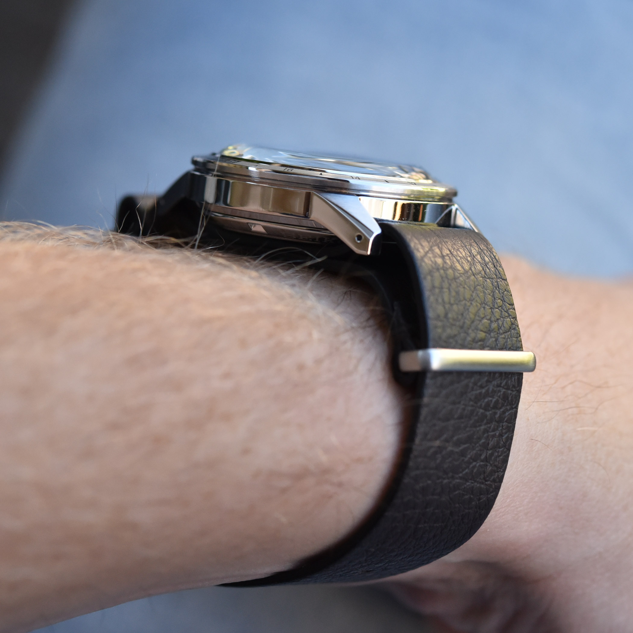 Inside the case is the well-known and reliable in-house calibre 4R34. This automatic movement, visible under a transparent back, beats at 3Hz and stores up to 41 hours of energy. This new GMT limited edition is worn on a NATO-style brown leather strap, which echoes the strap found on the 1913 Laurel watch.