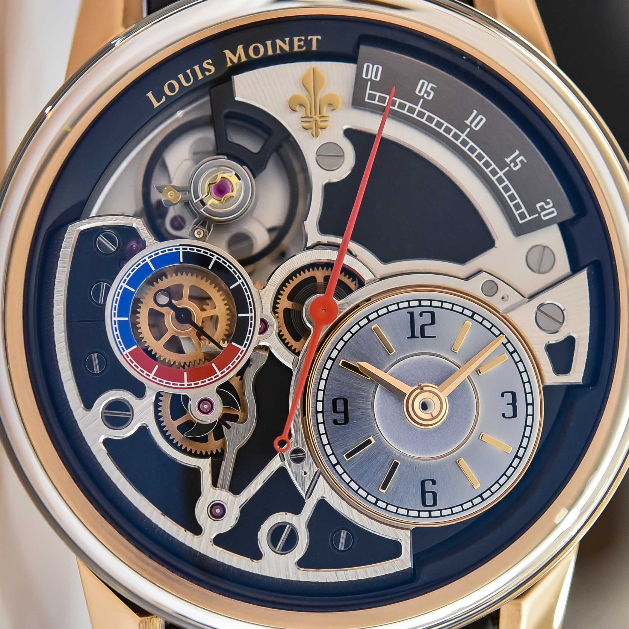Presented in 2014 under the name Louis Moinet 20-Second Tempograph, the watch we’re looking at today is not entirely new. All the habillage and the decoration, design of the movement have been deeply revised, but the original concept, as well as the surprising display, are carried over from existing models. For 8 years, the Tempograph has been an integral part of the brand’s collection, being of its most successful and most distinctive models. It is a watch that is typical of Louis Moinet’s production; complex, displaying the time in a different way, showing much of its mechanics on the dial side, it’s more than just a timepiece, it somehow tells a story. In this watch, “the fact that the 20 seconds are displayed on a sector and not a circle highlights the importance of each passing second and awakens the senses,” explains Jean-Marie Schaller, CEO & Creative Director of the brand.