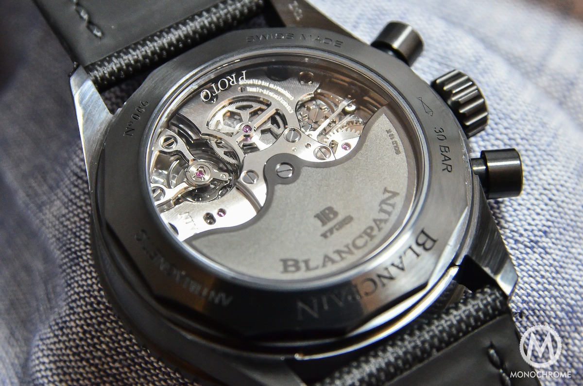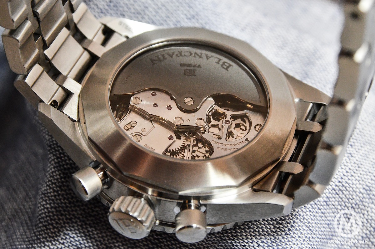 Blancpain, as several other brands like Audemars Piguet in the Royal Oak Chronograph or Vacheron Constantin in the Overseas Chronograph, always used to power its chronographs with the Frederic Piguet calibre 1185. This is still a good, or actually GREAT, movement that beats at 21.600 vph (3Hz) and features a column-wheel system to actuate the chronograph functions. However it might be getting a bit old compared to the competitors: Omega with the calibre 9300 (that we fully reviewed in the Seamster Planet Ocean Chrono) or IWC with the calibre 89361 (that comes in the IWC Portuguese Chronograph Classic that we reviewed a few weeks ago). But now Blancpain is flying on its own, with an in-house and exclusive calibre.
