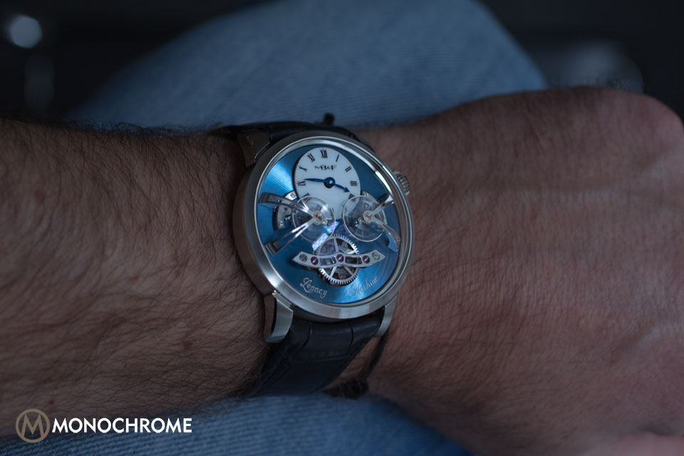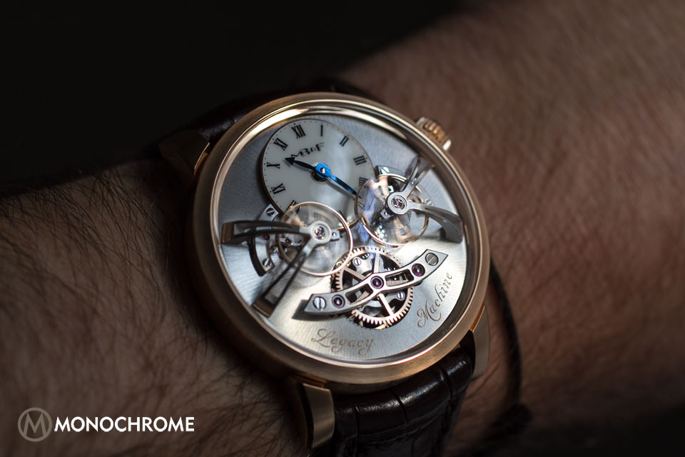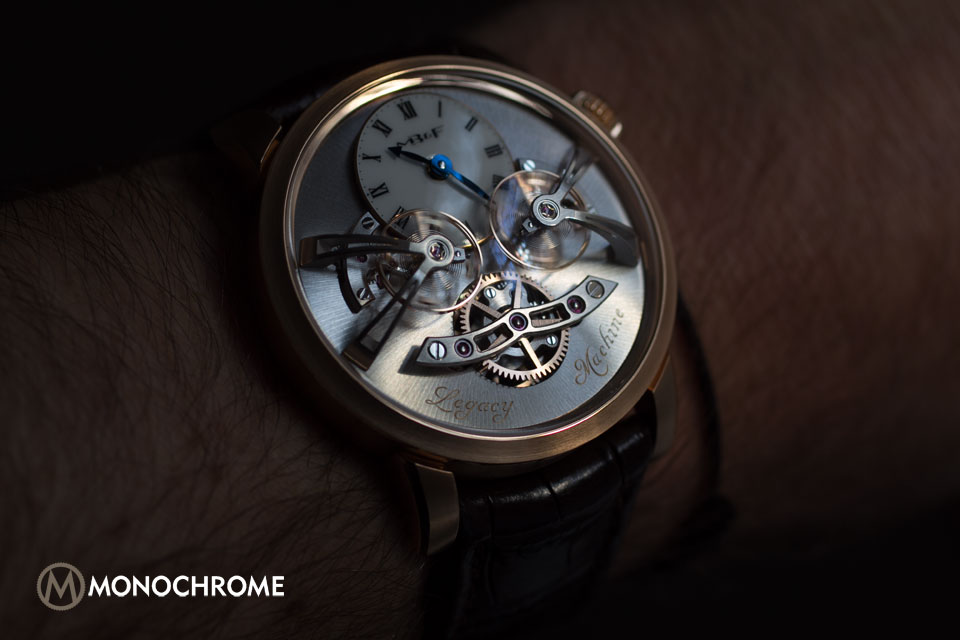 I won’t bore you with all kind of technical details again – you can read them in the article (click here) when we brought you the news first – and simply tell that this watch is absolutely brilliant on the wrist. But also dangerous! Whenever driving your car with the LE2 on your wrist, please DO NOT check the time! You might forget to look back at the road… Now on to the photos of the rose gold and platinum versions of the Legacy Machine 2. I hope you enjoy them as much as I do.