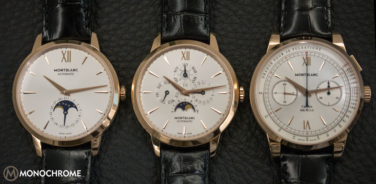 You might remember the Heritage Perpetual Calendar, which is the most affordable mechanical watch with a perpetual calendar on the market today, starting at € 10k Euro in steel. To the left is the Meisterstück Heritage Moonphase and to the right is today’s focus, the Meisterstück Heritage Pulsograph. This is a limited edition of 90 pieces, to pay homage to the Meisterstück fountain pen (which was born nine decades ago in 1924), and to the pen’s 90th anniversary. The Meisterstück Heritage Pulsograph is available for the spectacular retail price of € 27,000 Euro.