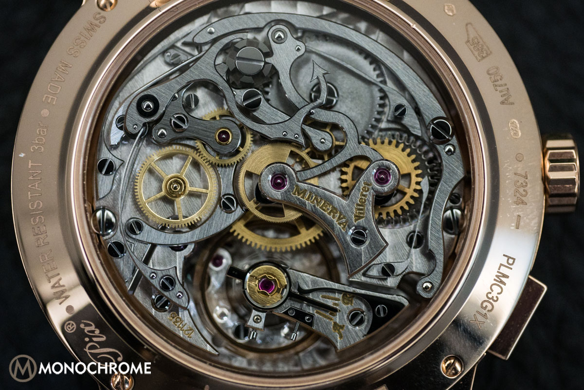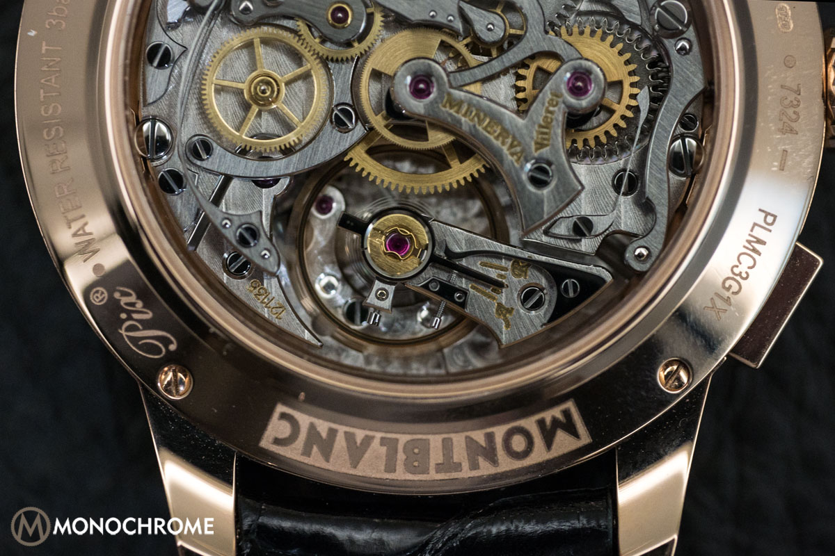 With the Heritage Pulsograph, for the very first time Montblanc integrates the work of its two manufactures. The movement used in the Heritage Pulsograph, comes from the Montblanc Manufacture in Villeret. This used to be the old Minerva Manufacture that fabricated in 1923 one of the first chronograph calibres for wristwatches and thus paved the way for the success of mechanical wristwatch chronographs. Vintage Minerva chronographs are highly collectable today and with right so, as their movement are among the most beautiful chronograph calibres ever produced. The movement in the Heritage Pulsograph is the noteworthy Minerva calibre MB M13.21, which is based on the Minerva calibre 13.20 that was first manufactured in 1923.