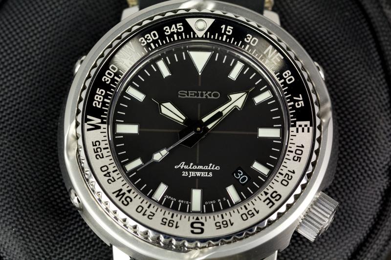 The first noticeable difference is the compass bezel. Although one could argue that any watch can be use as a compass, it does offer easier readings with a bi-directional smooth rotating bezel without the standard clicking sound you hear from a divers bezel, it is not a diver’s watch after all. The hands of the Field Tuna may be similar to the Marinemasters of Seiko, but the indices are far from similar. The date window is located at the 4 o’clock position rather than the industry norm of placing it in beside the 3 o’clock. Moreover, there are no labels of any kind in the bottom center of the dial. Texts such as the name of the piece and the depth rating are not shown, instead a simple yet elegant marking of a Seiko “Automatic 23 Jewels” is showed and written just above the 6 o’clock position, and need I say that the lume on this piece is stunningly bright.