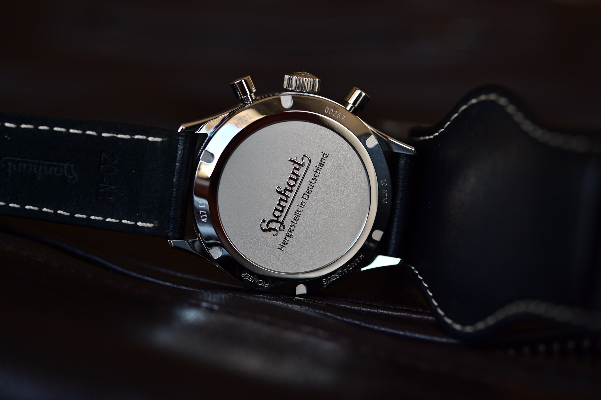 Behind the modern re-edition we’re looking at today is an important military watch, and possibly the most important model ever created by once-Swiss and now German brand Hanhart. The brand quickly specialised in stopwatches. The first Hanhart wrist chronograph was launched in 1938 and was powered by the company’s in-house, single-pusher calibre 40. The model quickly became popular with both German pilots and naval officers during the war. A year later, the TachyTele pilot’s chronograph launched with the new calibre 41, a double-pusher flyback movement.