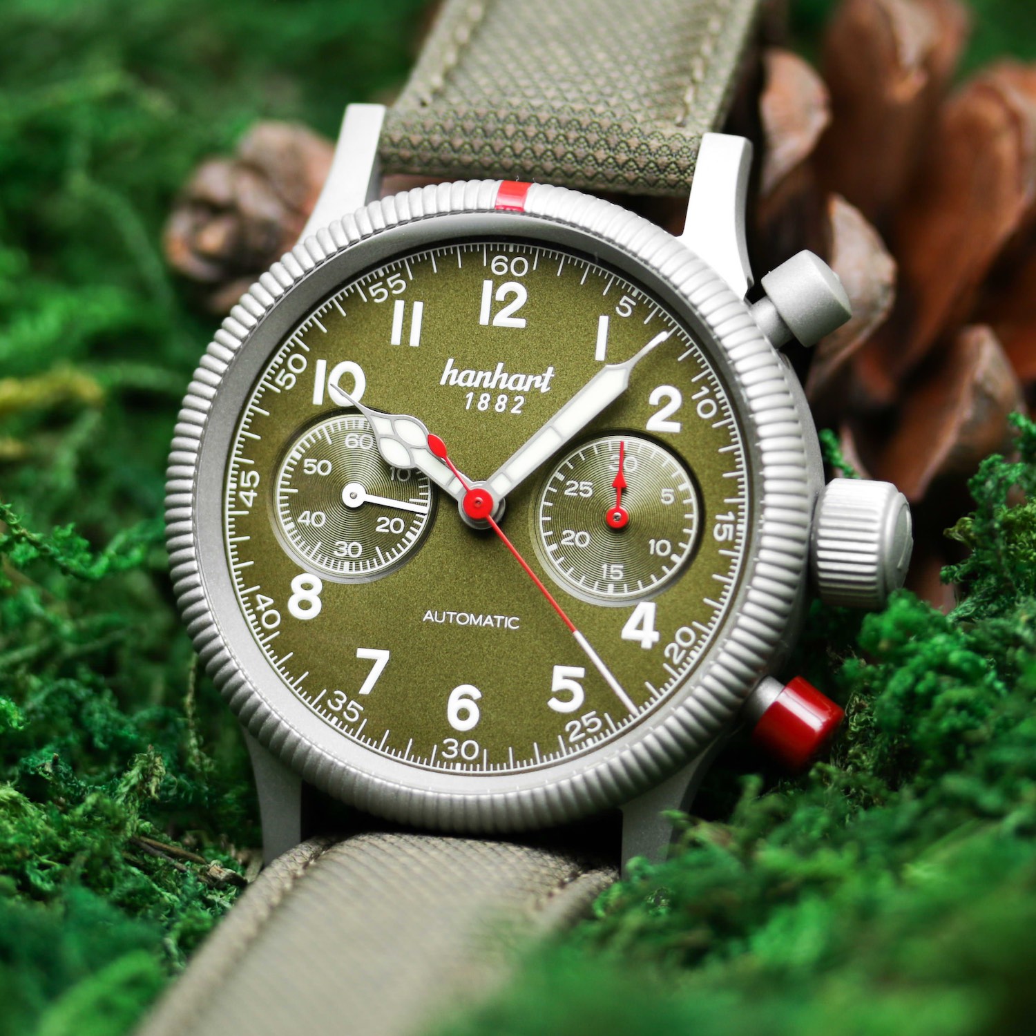 When it comes to historical pilot chronographs, the name Hanhart can’t be overlooked. The brand was one of the first to issue pilot chronographs to the German Armed Forces. Known as Flieger watches, these chronographs were utilitarian wrist instruments for pilots. Relatively discreet and down to earth (one of the reasons why we like them), the brand has recently started to make them more attractive, like this ultra-cool 417 ES Reissue. To celebrate the 80th anniversary of the historical model that served as inspiration, today the brand releases a cool, green limited edition of its signature chronograph. Here’s the Hanhart Pioneer Mk II 80 Jahre Jubilaeum.