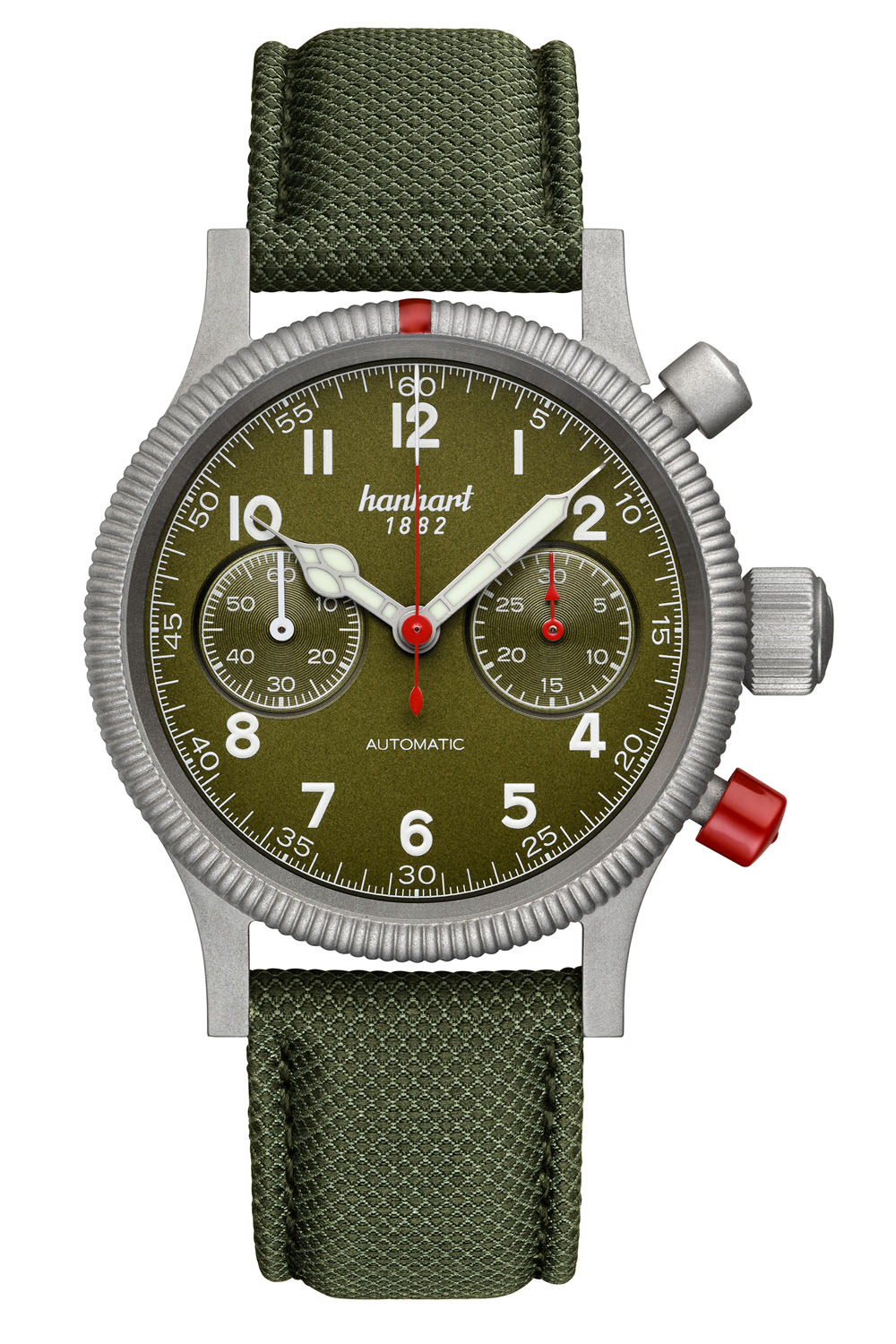 To underscore the importance of the 80th anniversary of this watch, Hanhart is releasing a limited edition based on its classic 2-pusher, bi-compax automatic chronograph, in an unprecedented and rather surprising colour scheme. And there are other new features that make this watch special.
