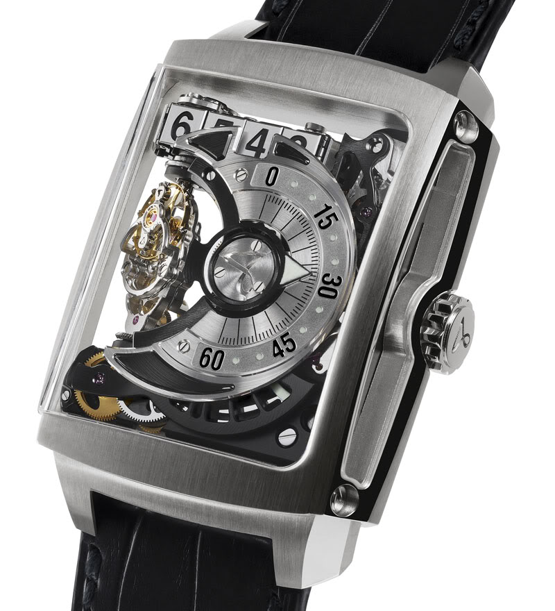 Futuristic in its construction method and the way in which it delivers the time, this piece is truly revolutionary.