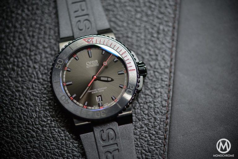 - Case: 42mm x 49mm x14 mm – titanium grade 2 middle case, steel bumpers and bezel, with black PVD coating – sapphire crystal on front – 50m water resistant