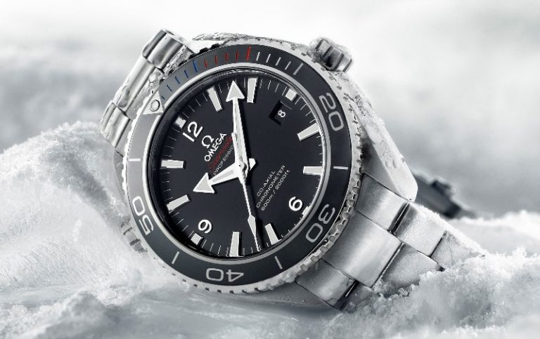 With its diameter of 37.5 mm it offers everything that one would expect from a serious diving chronograph. Unidirectional bezel, helium escape valve and a 600 meters /2000 feet water resistance. The true beauty of this serious piece of machinery lies in its movement. Omega uses caliber 3313 in this Planet Ocean, not to be confused with the new caliber 9300 of the new mens Seamaster Planet Ocean Chronograph, that is too large in diameter for a ladies watch. Caliber 3313 is an automatic chronograph movement with a column wheel, George Daniel’s Co-axial escapement and is even Chronometer-certified. Women should know that “Great watch you wear!” is not (always) a pick up line when they wear a sports watch of this statue, but an honest compliment. The price is around $ 7,000 USD.