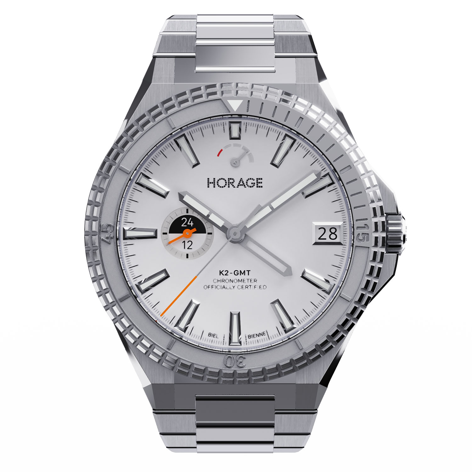 Each Horage Supersede watch is valued at CHF 6,500, so the total giveaway is worth CHF 39,000. The goal is to raise substantially more for Ukraine. One of each colour will be part of the drawing – 12:00 White, 24:00 Black, Transatlantic Blue, Atoll Blue, Jet Stream Grey and Boreal Green – and will be randomly selected for winners. Specifications start with a 904L stainless steel case at 39.5mm in diameter and 9.85mm in height with a rotating diver’s bezel. The dial has four complications – GMT, day/night indicator, date and power reserve indicator. Horage’s own K2 micro-rotor calibre is accurate to a chronometer level (-4/+6 seconds per day), has an anti-magnetic, wear-resistant silicon escapement, features 23 jewels, beats at 25,200vph (3.5Hz) and has a sizeable 72-hour power reserve. It comes with an integrated steel bracelet with a new, on-the-fly micro-adjustment mechanism that is tool-free.