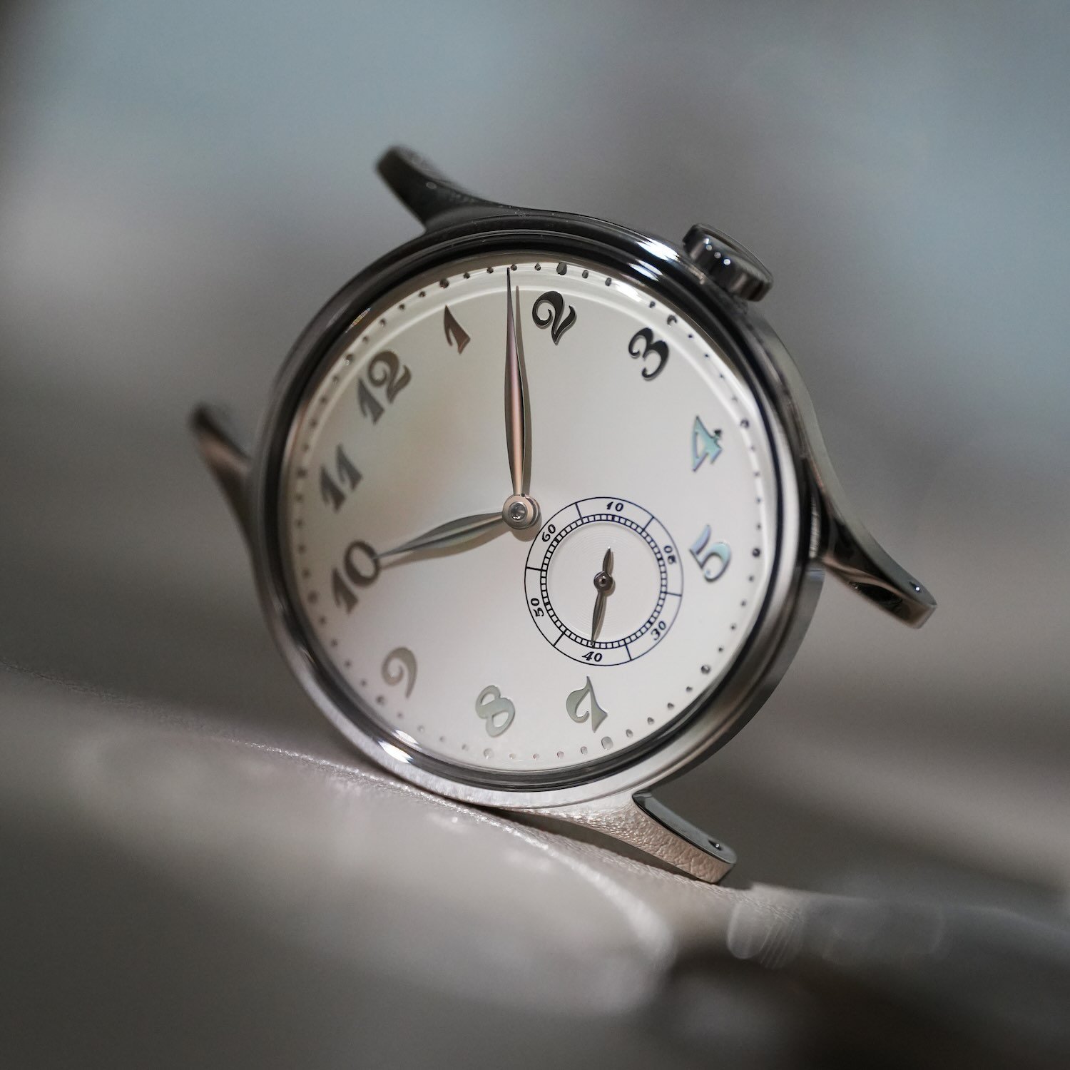 The 1930s inspiration continues on the dial, which has been left void of any logo or brand name. A deliberate choice explained by the wish to deliver “a watch solely because of what it is, and paying for what the watch offers exactly, not for what the label on the dial says.” Fair enough. The dial of the Horologically Unique HU-01 is offered in two variants, both great classics: glossy black and vintage white with a creamy hue. The dial of the white one has a recessed and snailed small seconds counter, while the black one is smooth. On both, there are classic Breguet-style, polished applied numerals and leaf-shaped hands, a railroad seconds track and a pearl-like minute track on the periphery. Again, it’s not reinventing the wheel and feels highly familiar, but it sure looks good.