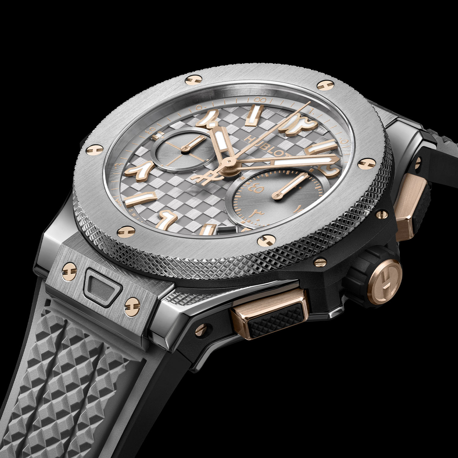 When it exploded on the scene in 2005, the Big Bang was the epitome of a supersized, muscular chronograph. Presented in a 44.5mm case, the Big Bang fused unconventional materials like rubber, ceramic and fibreglass. The distinctive layered case construction of the Big Bang, with its lateral ears, knurled bezel, rubber grips and six H-shaped screws in the bezel, is immediately recognisable.