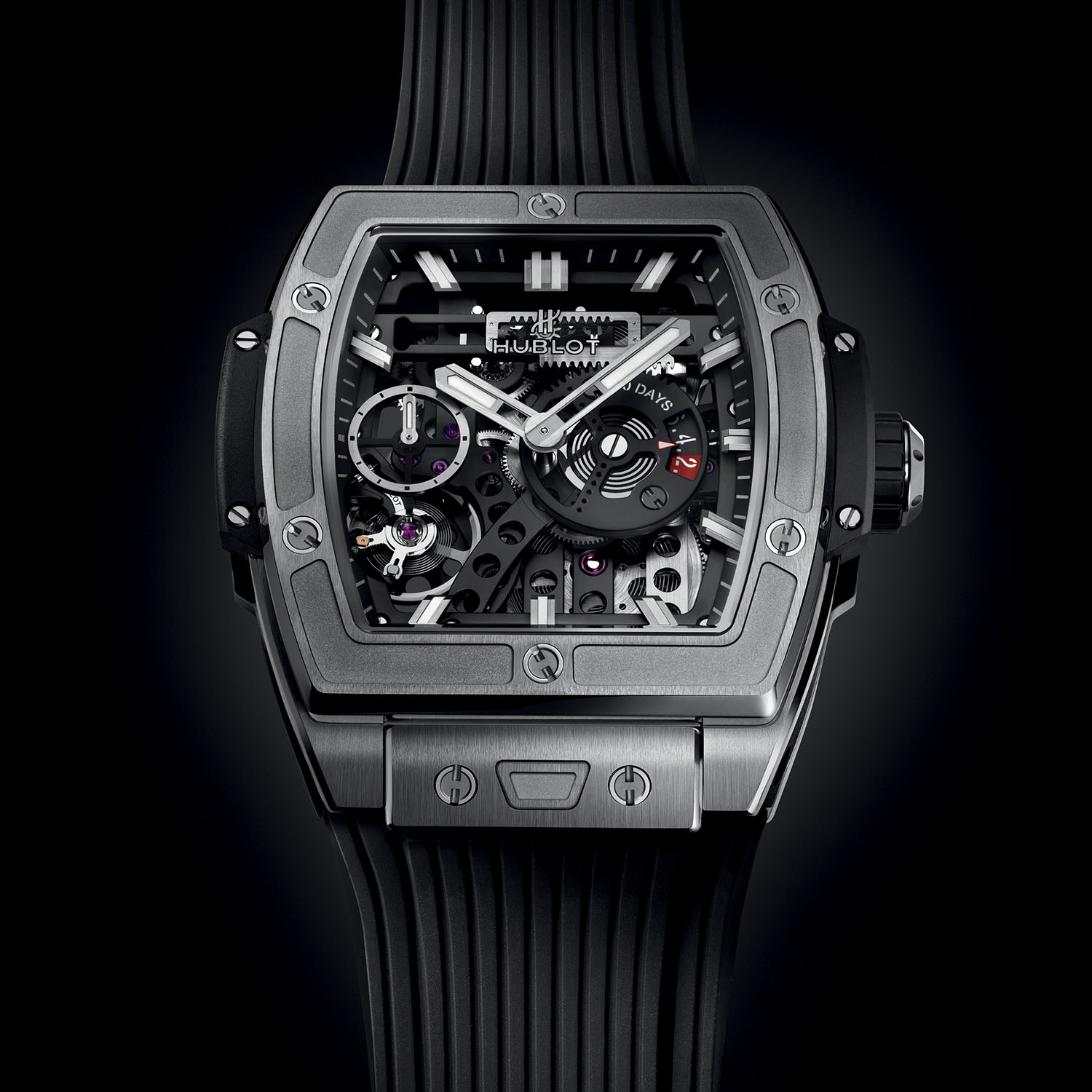 This combination is a first for Hublot. Indeed, for the first time the Spirit Of Big Bang, a collection that is gaining importance at Hublot, is receiving the popular Meca-10 manufacture calibre. Why only now…? Well, since the Spirit Of Big Bang has a shaped case, encasing the Meca-10 movement required some important adaptations on the movement to make it shaped just like the case of this watch.