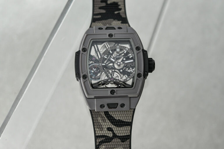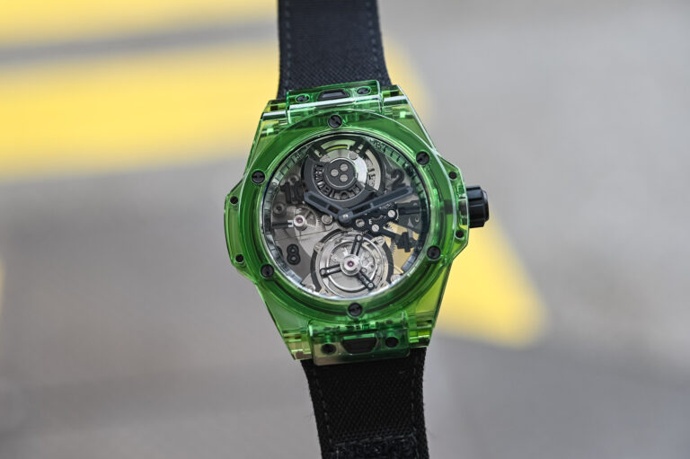 Following the detonation of Hublot’s extroverted Big Bang chronograph in 2005, the collection gradually expanded with several sub-families unified by their bold designs and distinctive fusion of materials. A couple of these sub-collections, like the Spirit of Big Bang with its tonneau-shaped case and the more recent Square Bang, departed from the round shape of the original Big Bang. Released in 2022, the Square Bang has, until now, featured in-house Unico chronograph movements. The latest Square Bang flexes its horological muscles and hosts a tourbillon regulator. Not only is it the first model in the family to boast a tourbillon, but it is also the first to feature a 3D carbon case, two hands and square bridges to match its silhouette.