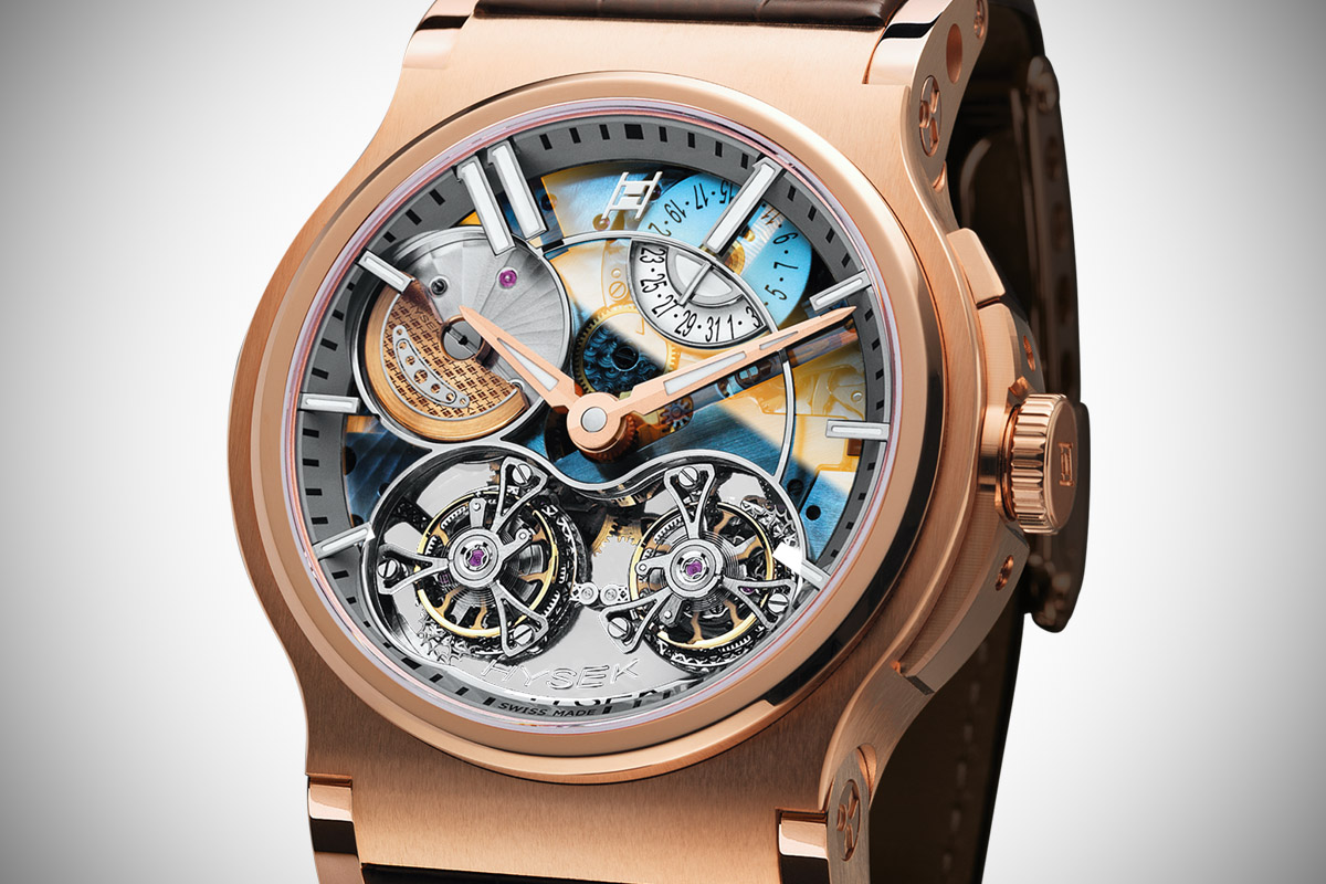 What is the goal of a tourbillon? Improving the accuracy, by negating the effect of gravity. What is the goal of a double tourbillon? Improving twice this accuracy. As basic as it seems to be, a double tourbillon is not a simple mechanism. And that’s what Hysek, a brand we didn’t cover yet, choose to introduce this year, in the Verdict 46mm Double Tourbillon Sapphire Dial. And this is not the only feature that comes into this watch.
