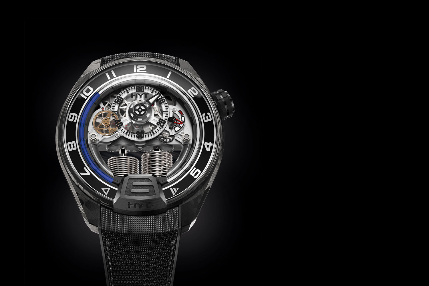 - Movement: Calibre H4 exclusive to HYT, developed by Chronode – hand-wound – 65h power reserve – 28,800 vibrations/h – retrograde fluidic hour, minute, seconds and power reserve