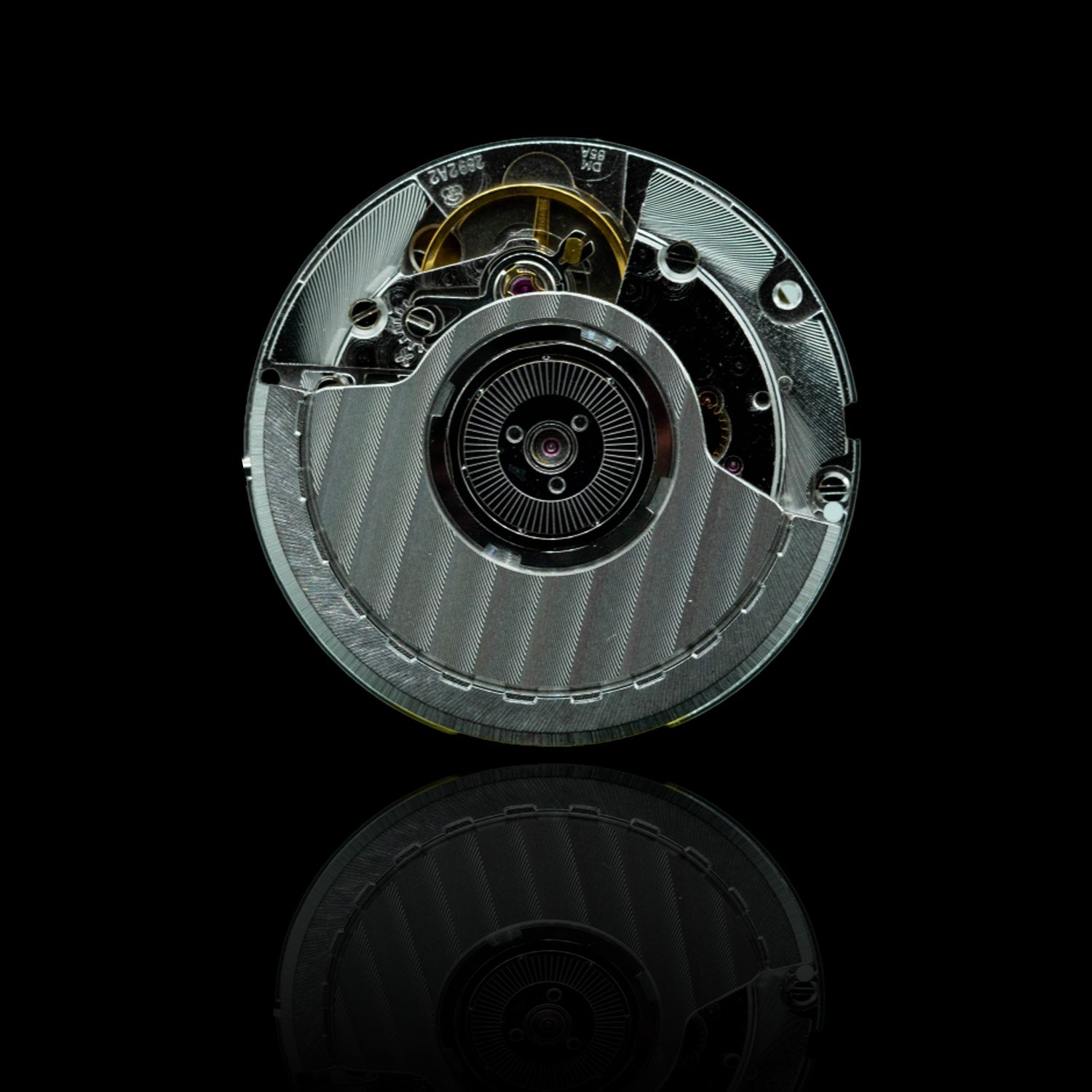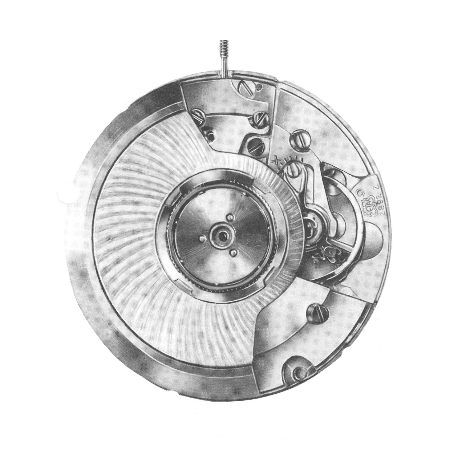 The original calibre 2892, with a smaller balance wheel than in earlier movements (like the ETA 2824) and a clockwise cock with an eccentric screw for regulation, featuring the ball-bearing stepped “Etarotor” and a unique arrangement of components around a central opening for the automatic winding mechanism, offering a 42-hour power reserve.