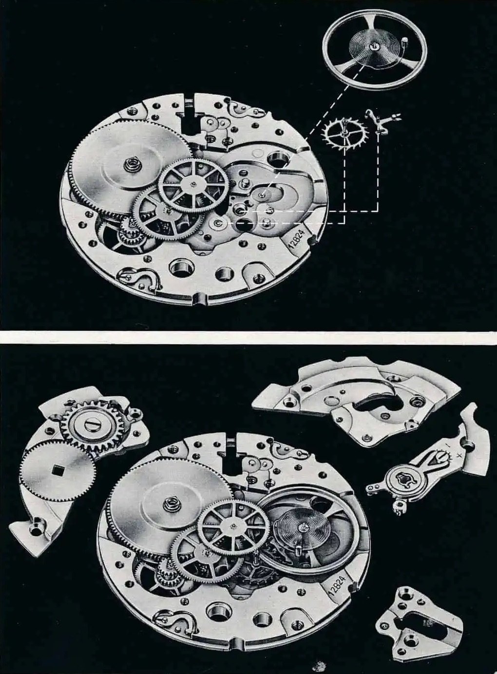 While retaining many design features from Heinrich Stamm, Bally’s mentor, the 2892 introduced numerous improvements that made manufacturing easier. As ETA’s nearly 50-year-old advertising highlighted, 2892 was “of simple and robust design, the movement has a direct drive sweep second, a calendar with instant date change and quick correction and a “stop-second” device for exact time-setting… This extra-flat movement allows for the production of fine, elegant watches. Because of its precision and reliability, it also provides for high-grade ones”.
