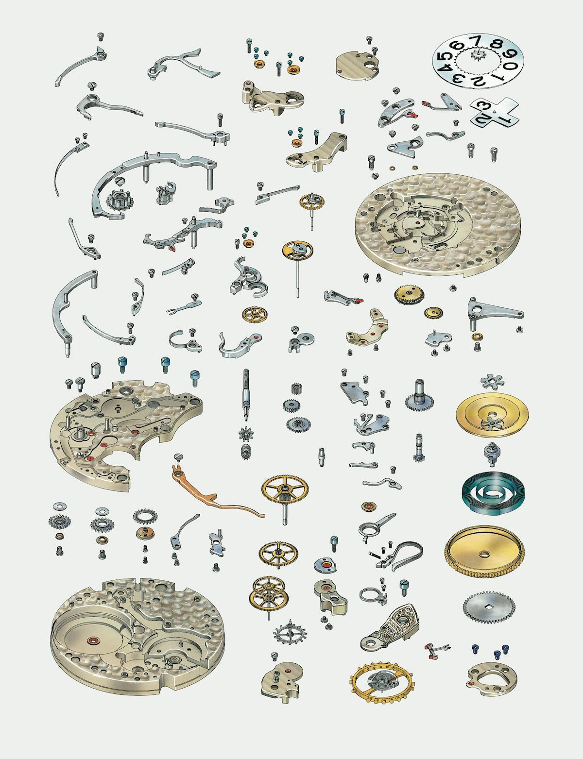 However, straying from the conventional positions of the sub-dials at 3 and 9 o’clock required a complete reevaluation of the configuration of a traditional lateral clutch column-wheel chronograph. Annegret Fleischer, a movement designer who joined A. Lange & Söhne soon after the company became operational in 1990, was tasked with finding a solution to integrate the mechanisms into the newly developed dial layout. The collaborative effort began in 1995, with ideas exchanged between departments in an ongoing dialogue.