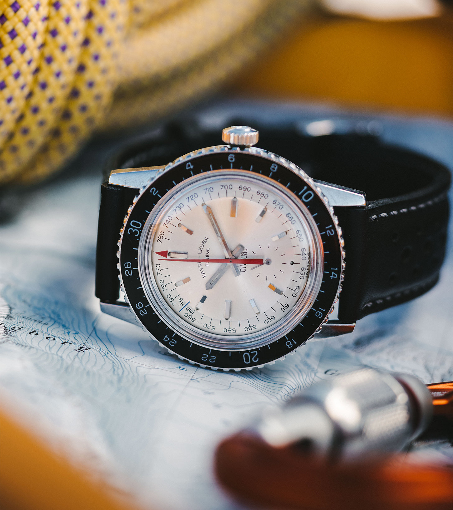 Shortly after that, Favre-Leuba went hard into the adventure watch space, releasing the famous Bivouac in 1962, the first mechanical watch to include an aneroid barometer for measuring altitude, making it an indispensable tool for mountaineers. 1964 would see the release of the Deep Blue (the precursor to the watch we are diving with today), one of the few watches to boast 200m water-resistance, a huge benchmark for that era. In 1968, they released another world-first in the Bathy, the first mechanical watch to include a depth gauge for diving. And in 1969, Favre-Leuba became a sister brand of Jaeger-LeCoultre, so if you’re really lucky, you can find some cross-branded watches out there from this era. Needless to say, the 1960s were a huge decade for Favre-Leuba.