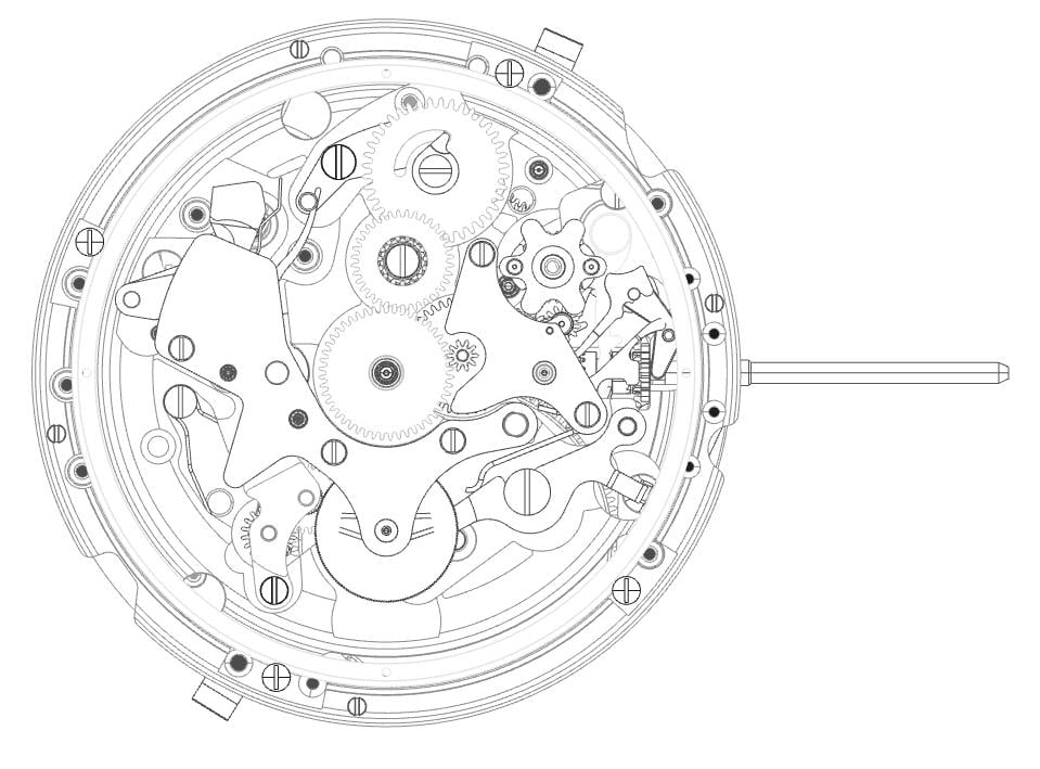 From the outset, the specifications were ambitious. They called for an integrated automatic winding system consistent with the traditional integrated chronograph design, featuring a column-wheel mechanism and a central rotor mounted on ball bearings. The movement also had to offer a power reserve of over 50 hours, feature bidirectional winding, and have a slim profile, only slightly thicker than existing hand-wound movements. Precision was crucial, and components had to be designed to be stamped with such quality that they could be assembled without the need for traditional filing.
