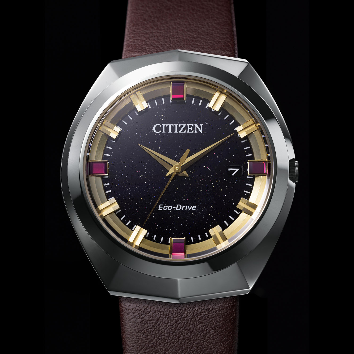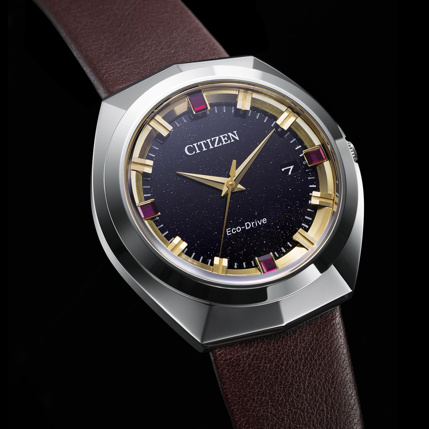 There’s also a cool vintage-inspired limited edition with design cues from the 1973 Citizen Quartz EFA. It shares the black dial, dimensions and water resistance of the regular models, but the hands and indices are now gold (coloured) with red lab-grown rubies at 12, 3, 6 and 9 o’clock. The outer bezel is also polished steel instead of black ion-plated, and the strap is brown LWG-certified calf leather that replaces the steel bracelet. All models are powered by the new Calibre E365 Eco-Drive with an accuracy of +/-15 seconds per month and a one-year power reserve.