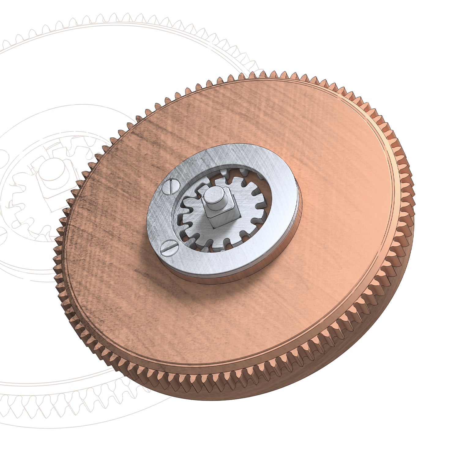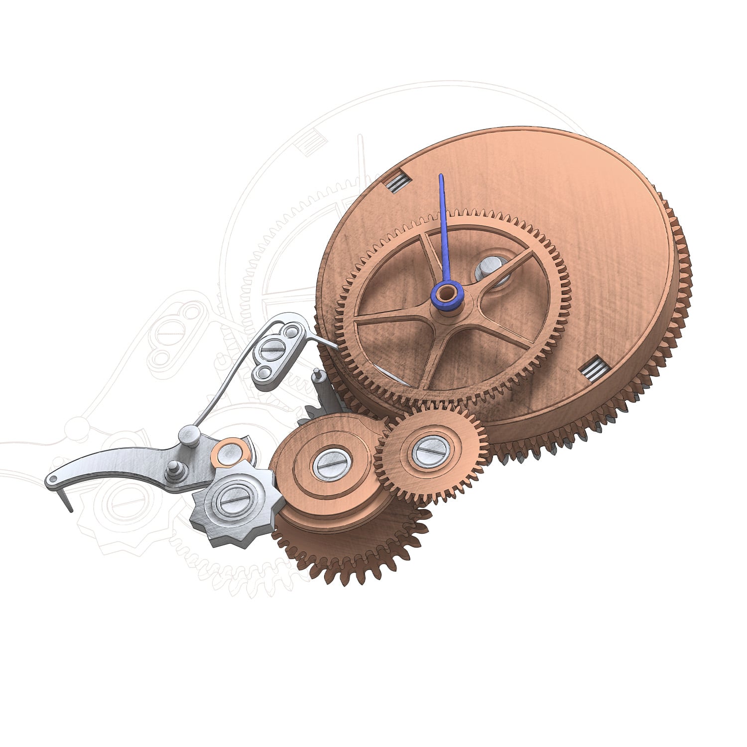 The hand-wound calibre CW03 comprises 238 components and 47 jewels – a high number explained by the fact that every wheel pivots between two jewels to reduce friction. Two differentials are integrated, each serving a distinct and original function: one governs the jumping power reserve, while the other enables a zero-reset mechanism.