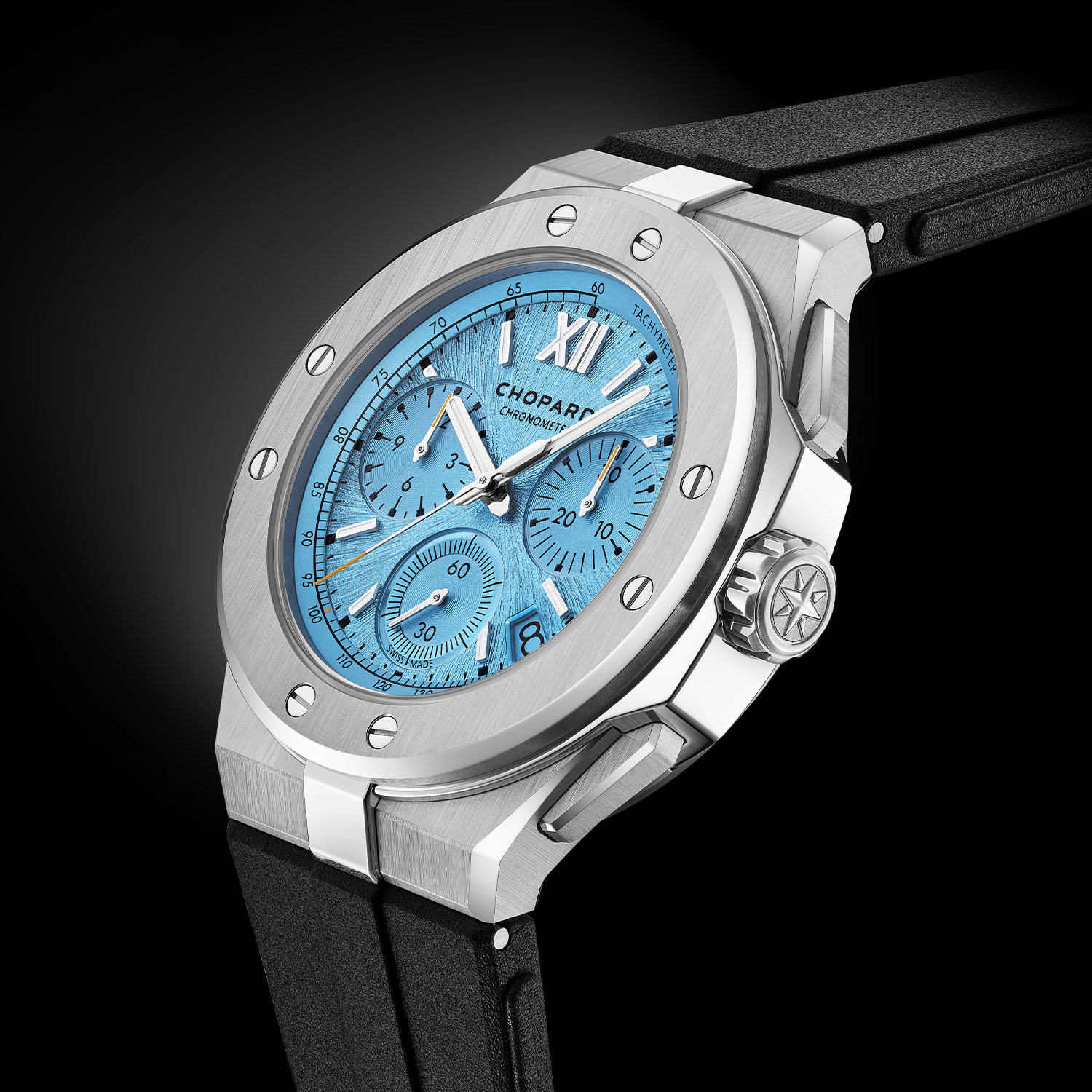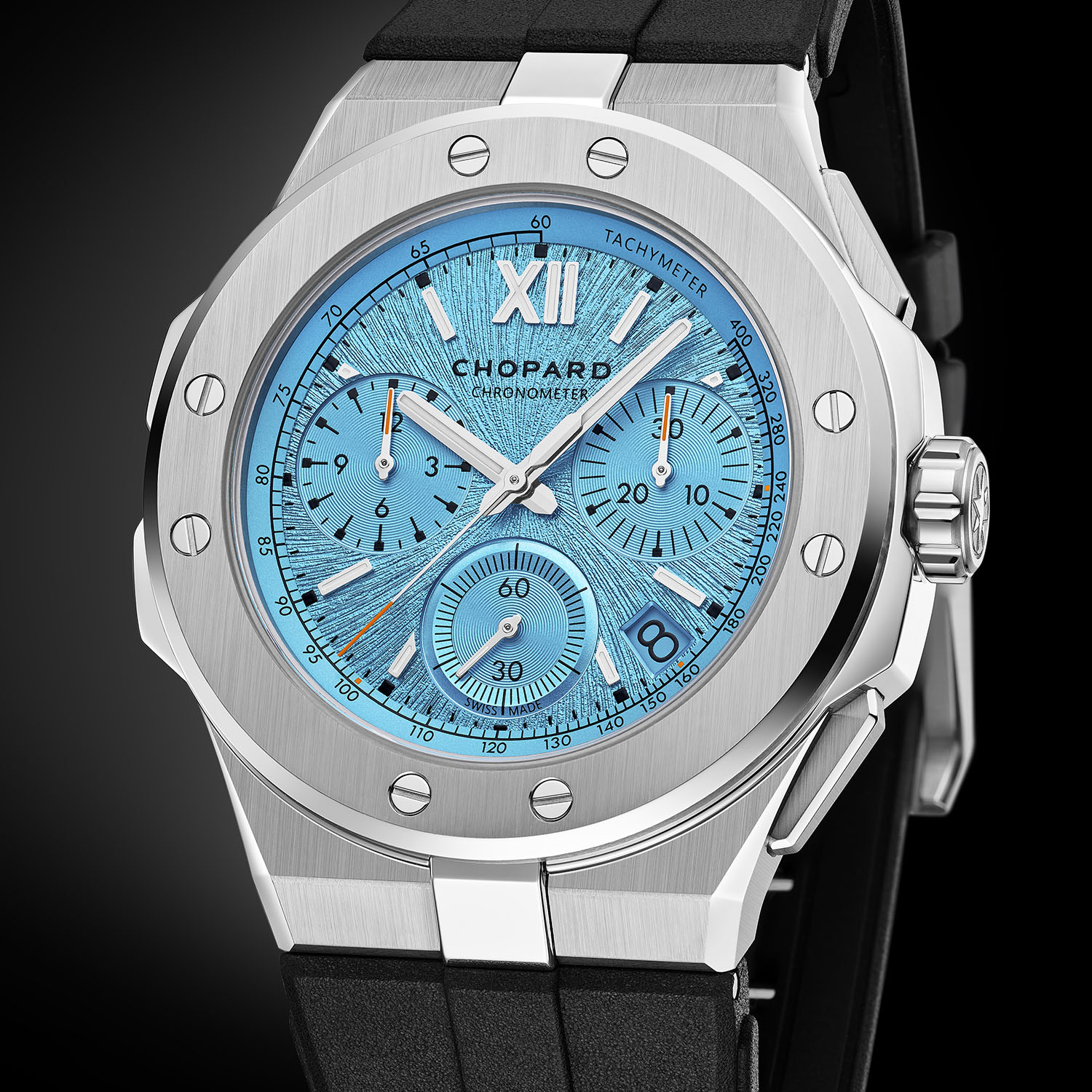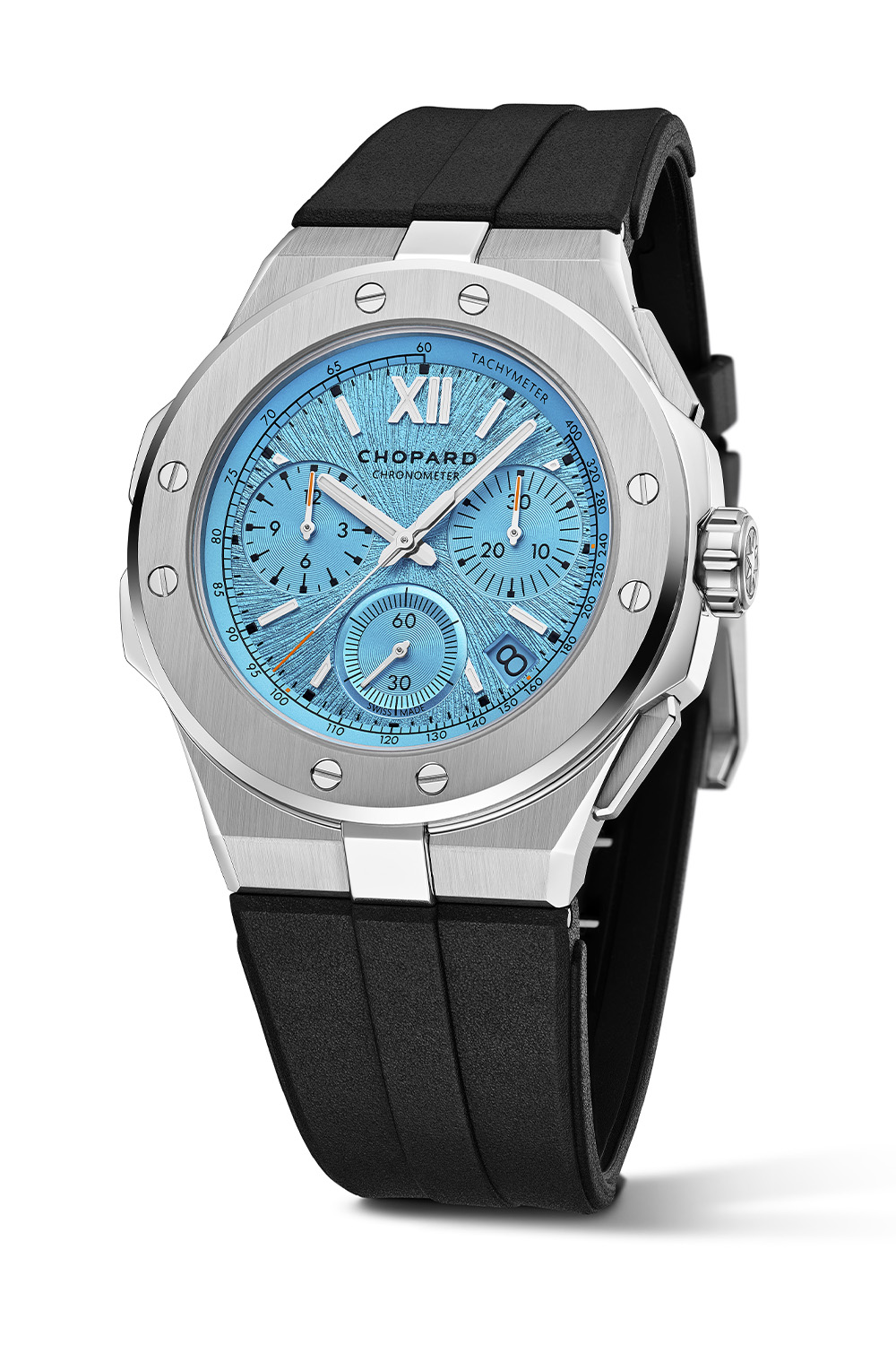 The new Chopard Alpine Eagle XL Chrono Maritime Blue is released as a boutique-exclusive model and priced at EUR 20,800. For more details, please visit chopard.com.