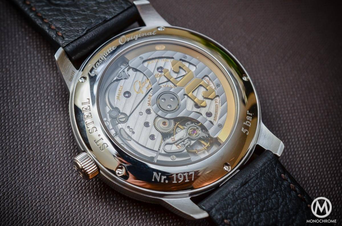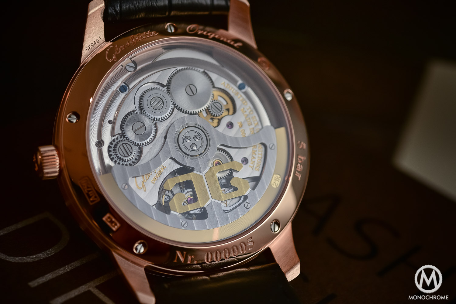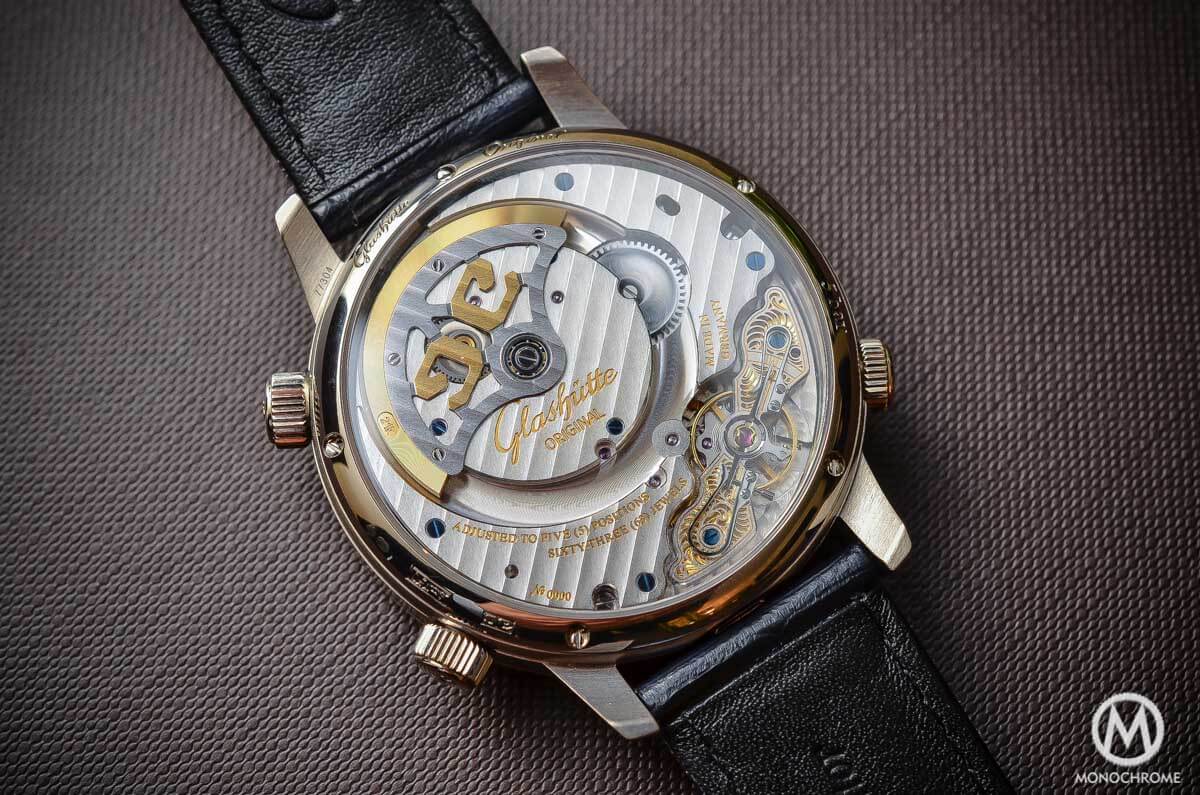 The new boutique, dressed in cream and dark wood (in a cosy, modern and far away from exuberant atmosphere) is divided in 3 areas: the first one is entirely devoted to the exposition, with large and clear displays to discover the watches offered by the Saxonian manufacture. After a corridor adorned with the high-end pieces (even if you can afford them, it’s always pleasant for the eyes to meet with a tourbillon or a complex chronograph), sits a classical selling area. The most interesting part is at the back of the boutique. There, a salon will allow collectors and potential clients to sit around a table, in order to discuss and discover both the watches, the brand, the manufacture and its rich history (see here to know more). Next to this salon is a watchmaker’s bench, and that’s where the difference come.