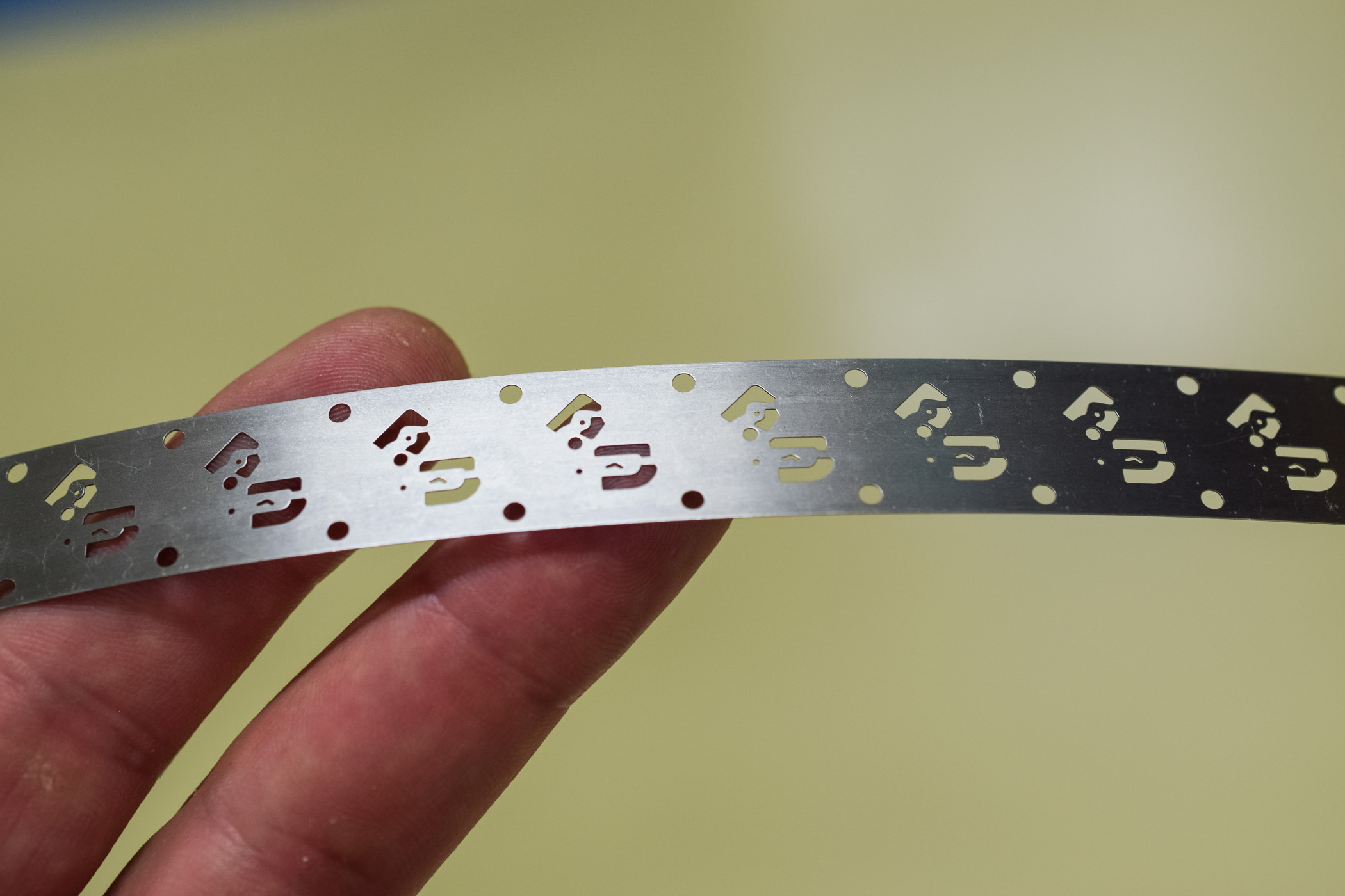 Stamping tools are complex and expensive to manufacture, but they allow the production of highly accurate components with repeatability and a high productivity. The production tolerances are of +/- 2 microns.