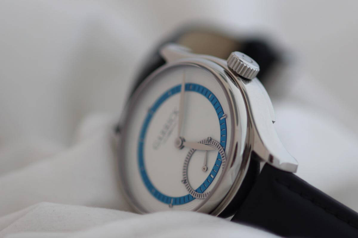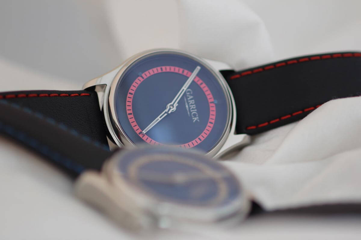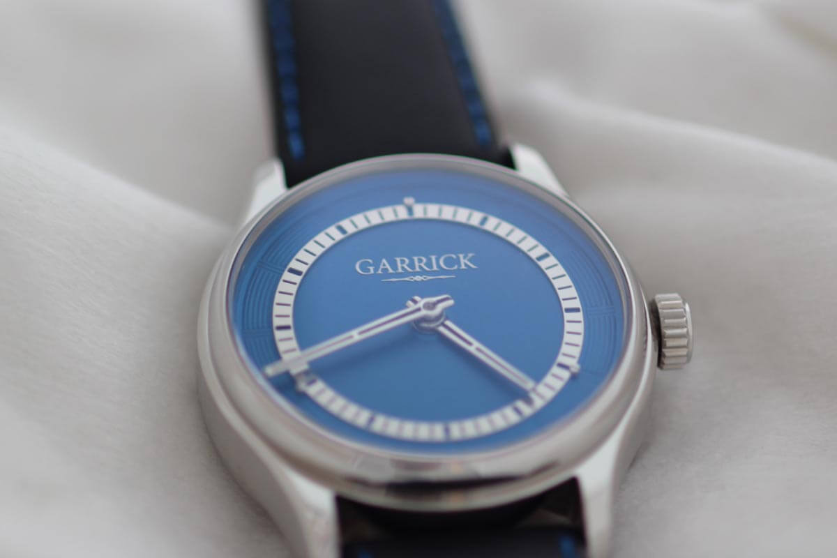 Many people inquire as to why we don’t countersink the screws. The rationale for our decision was to confer depth to the dial surface. Furthermore, we wanted to accentuate the blue hues of the thermally blued screws which glisten in ambient light. Part of the Garrick paradigm is the concept of bespoke, therefore if a customer wants the screws to be countersunk we will gladly accede to their request. Potentially every Garrick watch is unique.