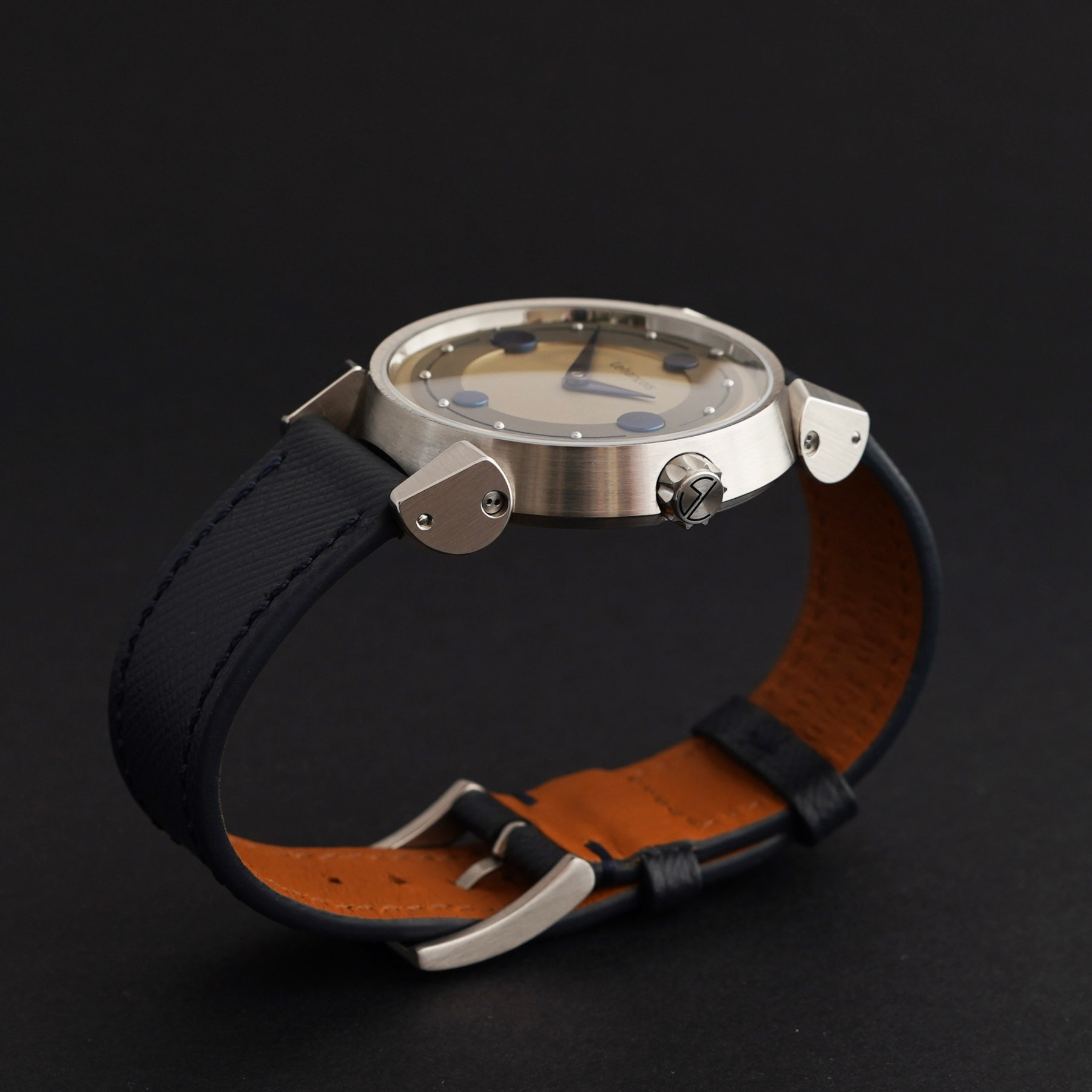 I have limited myself to 20 pieces for this one, all made to order. I offer some customization options at the level of steel studs and roundels on the dial to be finished in a different colour, done by heating them over a flame. This allows me to obtain some rather beautiful combinations. Currently, half the series is booked which I am really happy about! Right now I am in the phase of producing these watches to deliver them to the client as soon as I can. Right now I don’t know exactly which one is done first, but I am working hard on this.