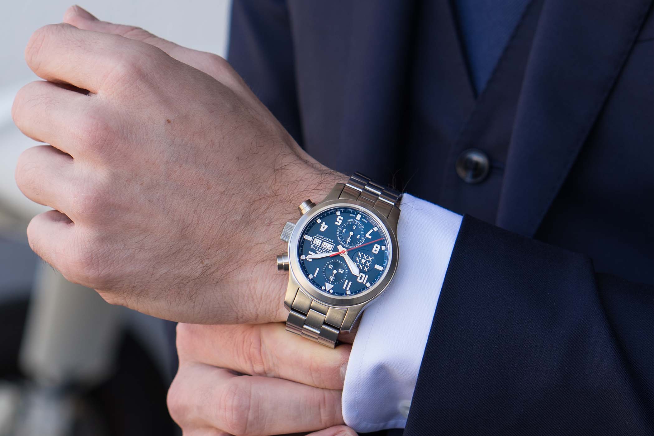 As you would expect for pilot watches, the PC-7 limited editions are solidly and pragmatically made timekeepers. Two versions are available: a chronograph and a day-date model. The utilitarian yet versatile design comes in a 42mm case that exudes a robust feel. The solid caseback is engraved with the PC-7 team planes. The water-resistance of the watch is 200m or 20 ATM. The royal blue dial features applied metallic planes in diamond formation. The luminous hands and applied hour markers/numerals provide accurate timekeeping in all conditions. The sapphire crystal features double-sided anti-reflective coating to increase display contrast and legibility.