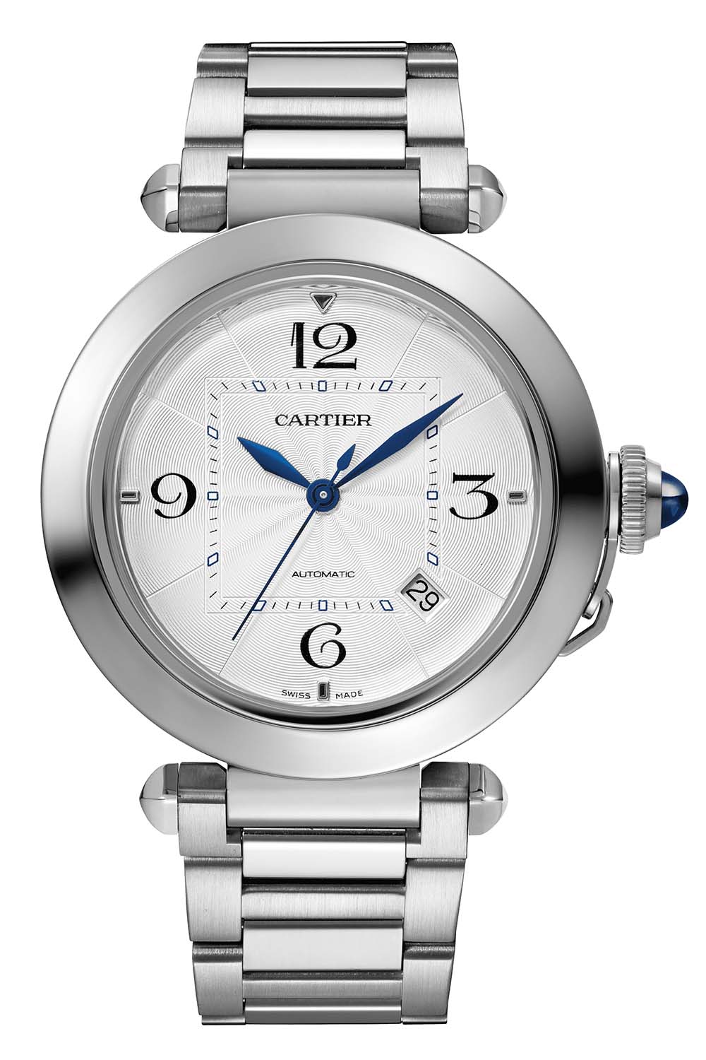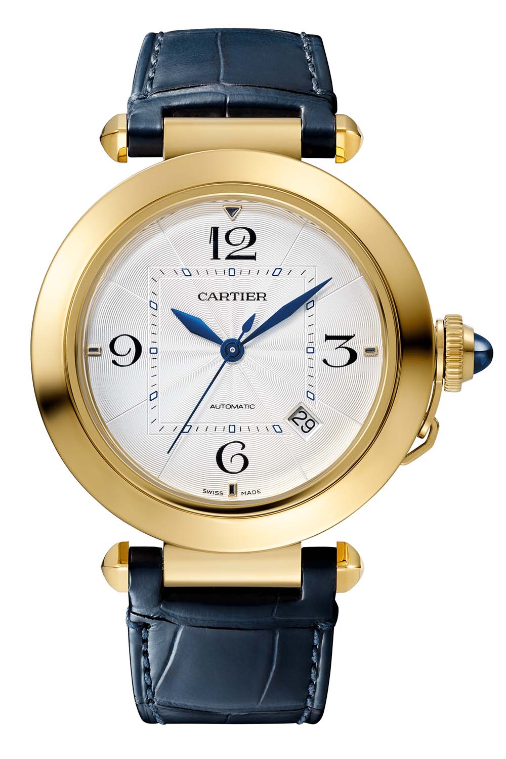 The 2020 Pasha de Cartier is available in several materials and two sizes. The large model (see below) measures 41mm in diameter with a slender 9.55mm height. It is available either in stainless steel or in 18k yellow gold.