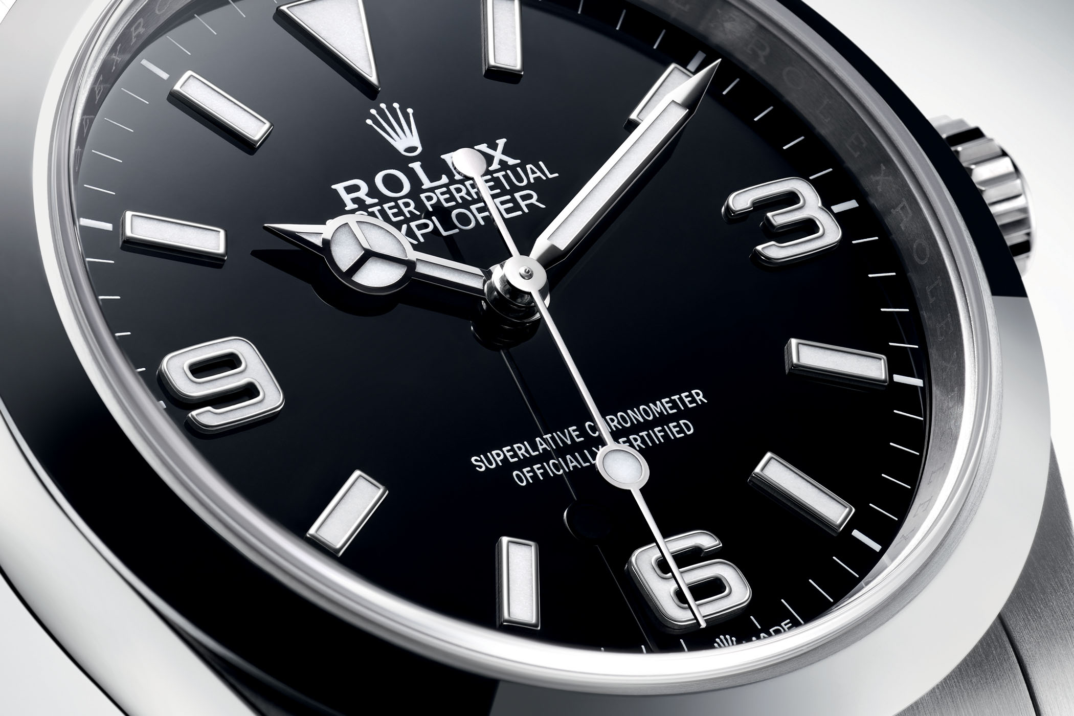 The latest Explorer, crafted from a solid block of corrosion-resistant Oystersteel, measures 40mm across and has a thickness of 11.60mm. The Twinlock screw-down crown and sealed caseback ensure a water-resistance of 100m. The three-link Oyster bracelet features the Oysterlock folding safety clasp and the brand’s Easylink comfort extension link to adjust the bracelet by 5mm. Like former editions, the flat steel bezel is polished, while the middle case and bracelet have satin-brushed finishings with polished bevels.