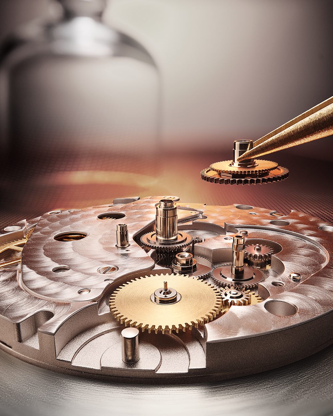 An aperture on the peripheral opaline track reveals the names of 24 cities representing the 24 time zones, indicated by a second inverted triangle at 6 o’clock. The crown at 10 o’clock activates the city selector, allowing you to set the second time zone according to location. Once the city has been selected, the hour hand of the second time zone jumps accordingly. Furthermore, cities observing daylight savings are clearly marked, and the stop-seconds feature means that the second time zone can be precision-set.
