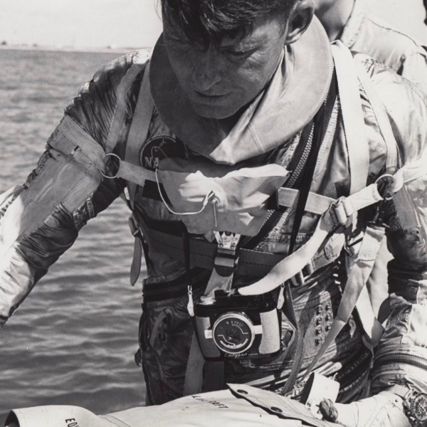 The links between Omega and space exploration started before NASA’s tests on the Speedmaster and its qualification as the official watch of astronauts, which happened in 1965. Indeed, most early astronauts were test pilots, and they understood the need for a timekeeping instrument while flying. Gagarin, the first man in space (April 1961), already had a watch around his wrist. The same happened with American astronauts who, way before NASA supplied them with a flight-qualified timepiece, already wore watches in space.