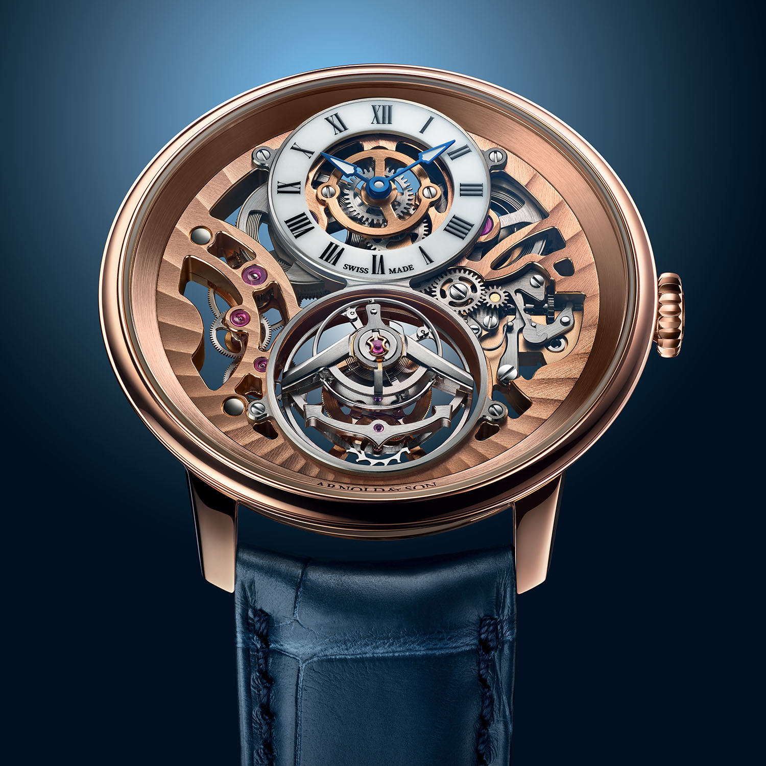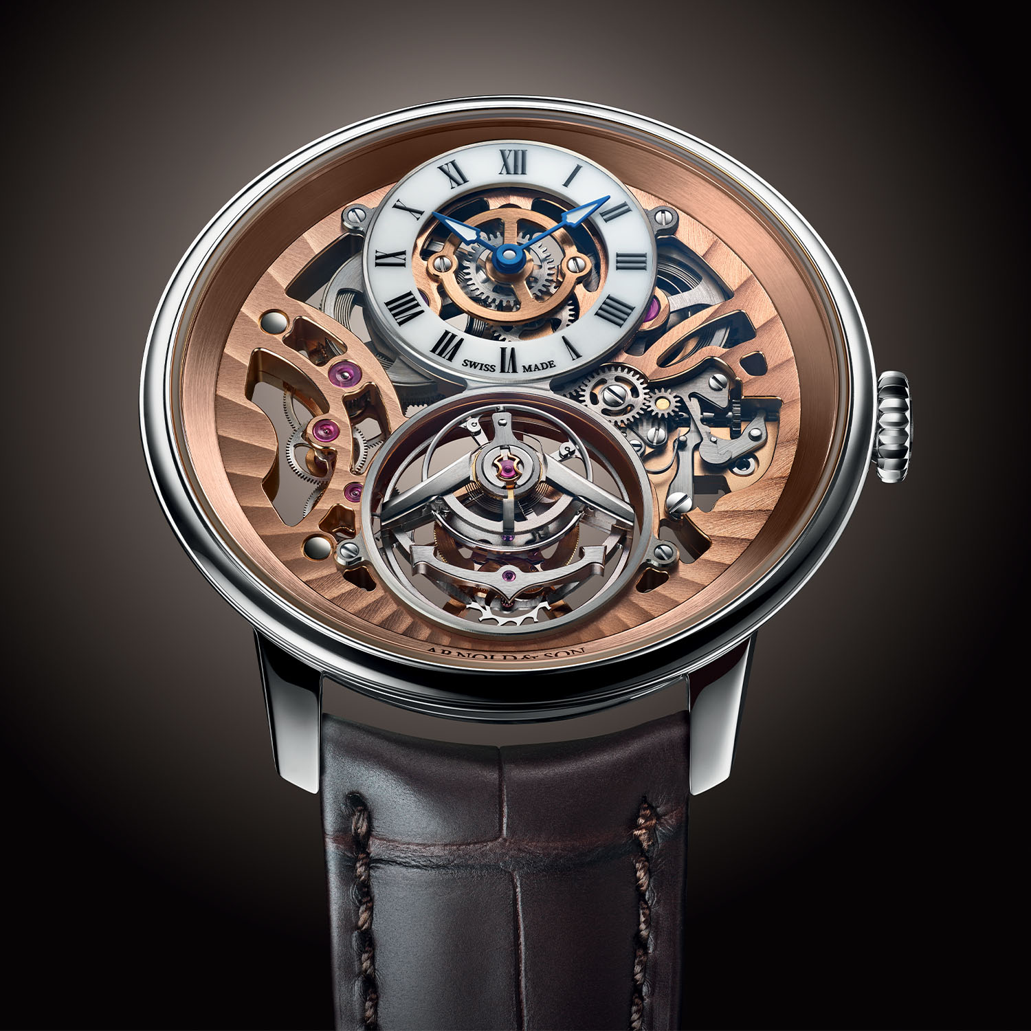 The Arnold & Son Ultrathin Tourbillon Skeleton in red gold comes with a blue alligator strap and is a limited edition of 28 pieces retailing for CHF 74,400 (incl. tax). The platinum version, presented on a brown alligator strap, is also limited to 28 timepieces and retails for CHF 86,200 (incl. tax). For more information, please consult arnoldandson.com.