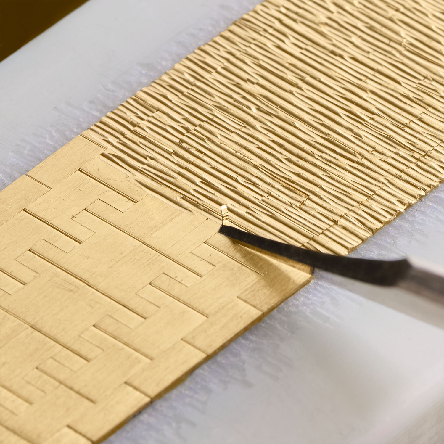 While both models share 32mm diameters, a 10mm profile, and 18k rose gold cases, their looks differ radically. The first Limelight Gala Precious reference showcases Piaget’s famous Décor Palace engraving technique, a distinctive feature of its 1960s jewellery watches. In a departure from traditional smooth, polished gold surfaces used as structural supports, Piaget breathed life into the precious metal, endowing it with a more fluid, artistic temperament. Inspired by the traditional guilloché work used on dials, Piaget developed an original hand-engraved technique to create a rich, textile-like surface. Using the sharp tip of a burin, each groove is engraved by hand into the gold, ensuring that no two models will ever be alike. Executed on the bracelet and dial, the irregular pattern of horizontal lines sends light skipping across the gold surfaces.