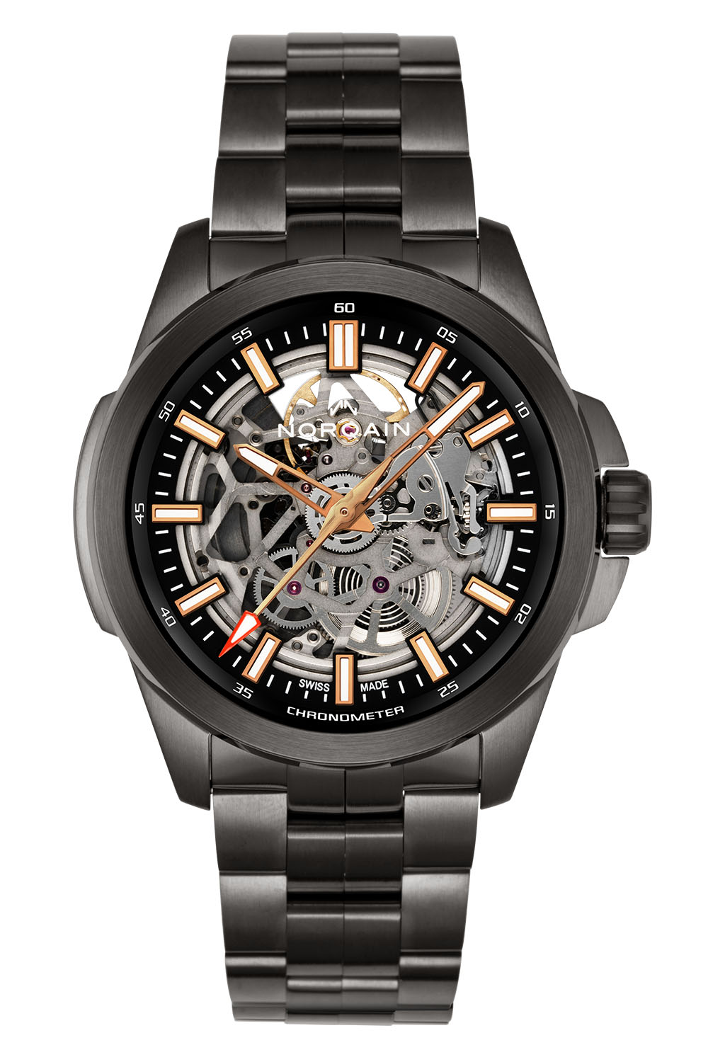 Quick facts: 42mm x 11.80mm x 48.75mm (L2L) – steel, with optional DLC coating – screw-down crown, sapphire crystals, 100m water-resistant – calibre NN08S (Sellita SW200-1, openworked), automatic, 41h power reserve, 4Hz frequency – steel bracelet with micro-adjustment or rubber strap – non-limited editions